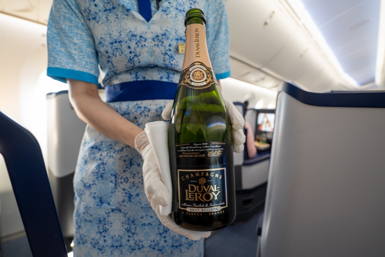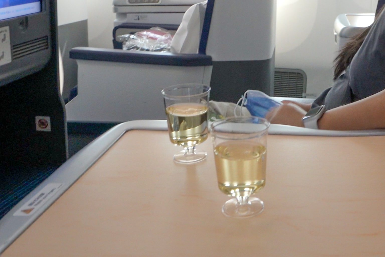 The crew also came by to pass around some pre-departure welcome drinks, which included champagne, juice, and water. Naturally, we opted for the champagne despite the noon takeoff time – if anything, as a way to get a head start on acclimating to the Asia time zone.