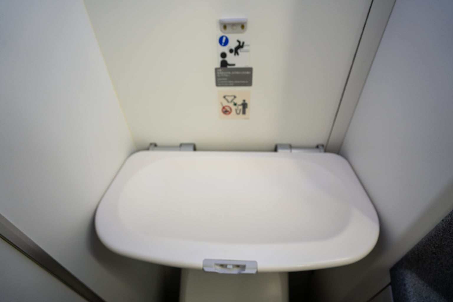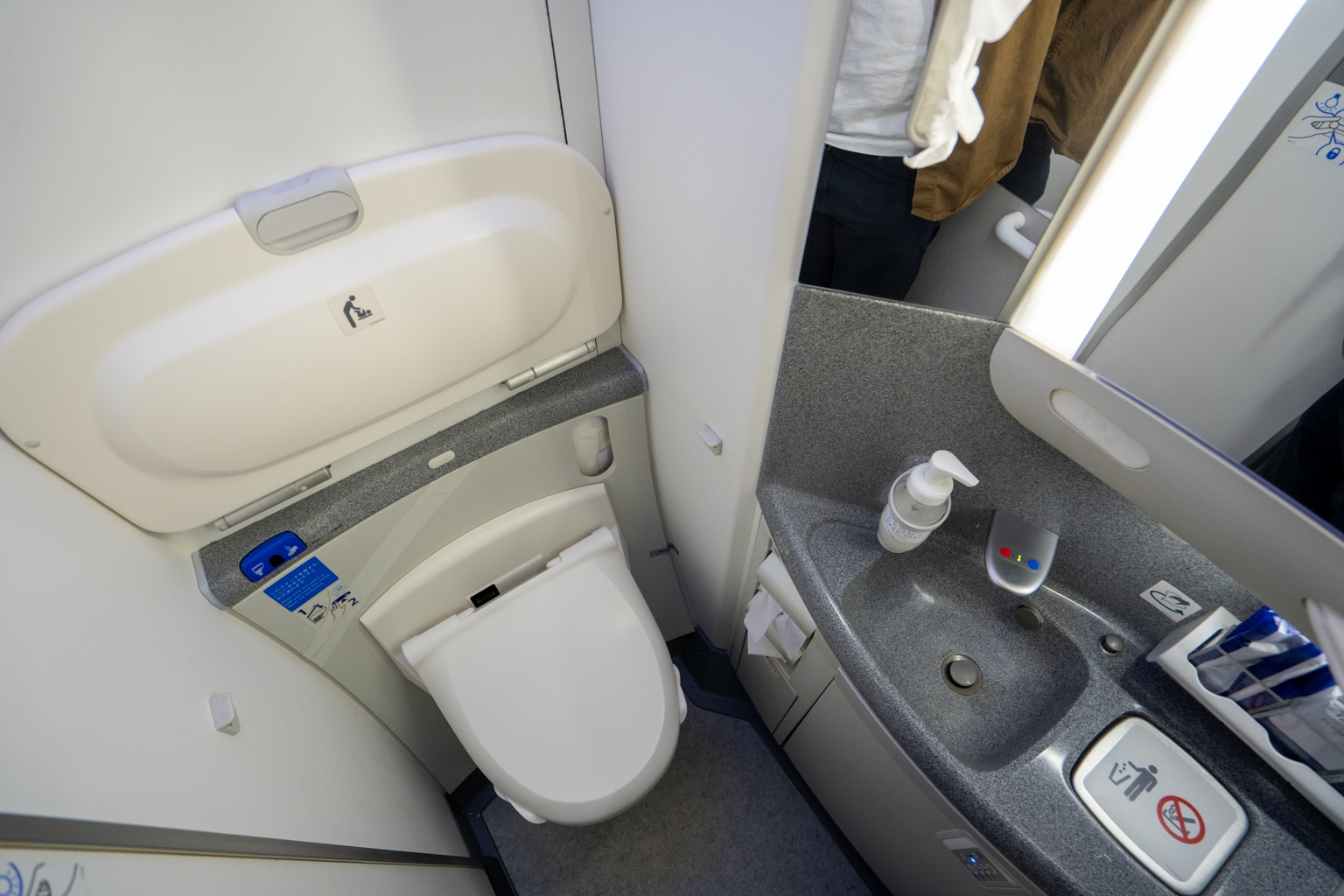 I found the restroom in the galley between the two business class cabins to be quite narrow, even for a Dreamliner. Despite the limited space, the restroom still managed to fit in a fold-down baby changing table.