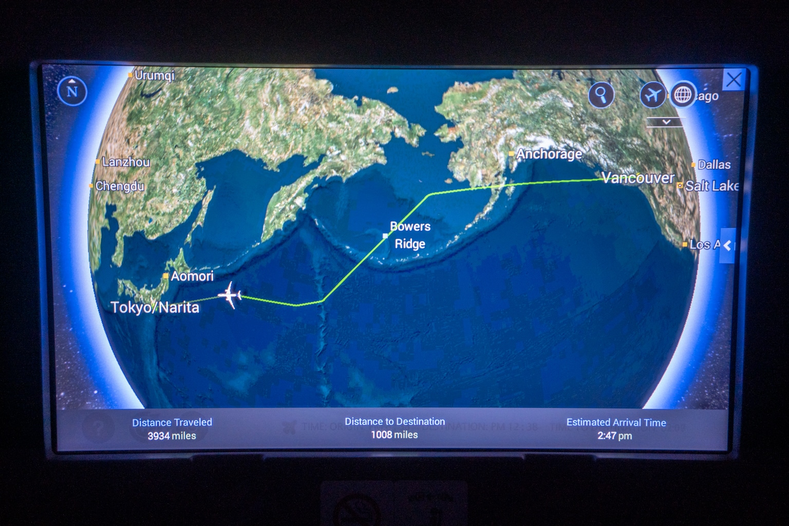 After the meal service concluded, the cabin lights were dimmed for most of this transpacific crossing to help passengers get some rest and prepare to arrive in a different time zone.