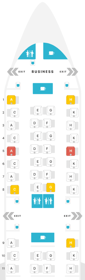 If you’re flying on the Boeing 787-9 Dreamliner, the “boxy and blue” seat design will be comfortable, but not cutting edge. You’ll still have a great onboard experience, whether you’re flying solo or as a couple.