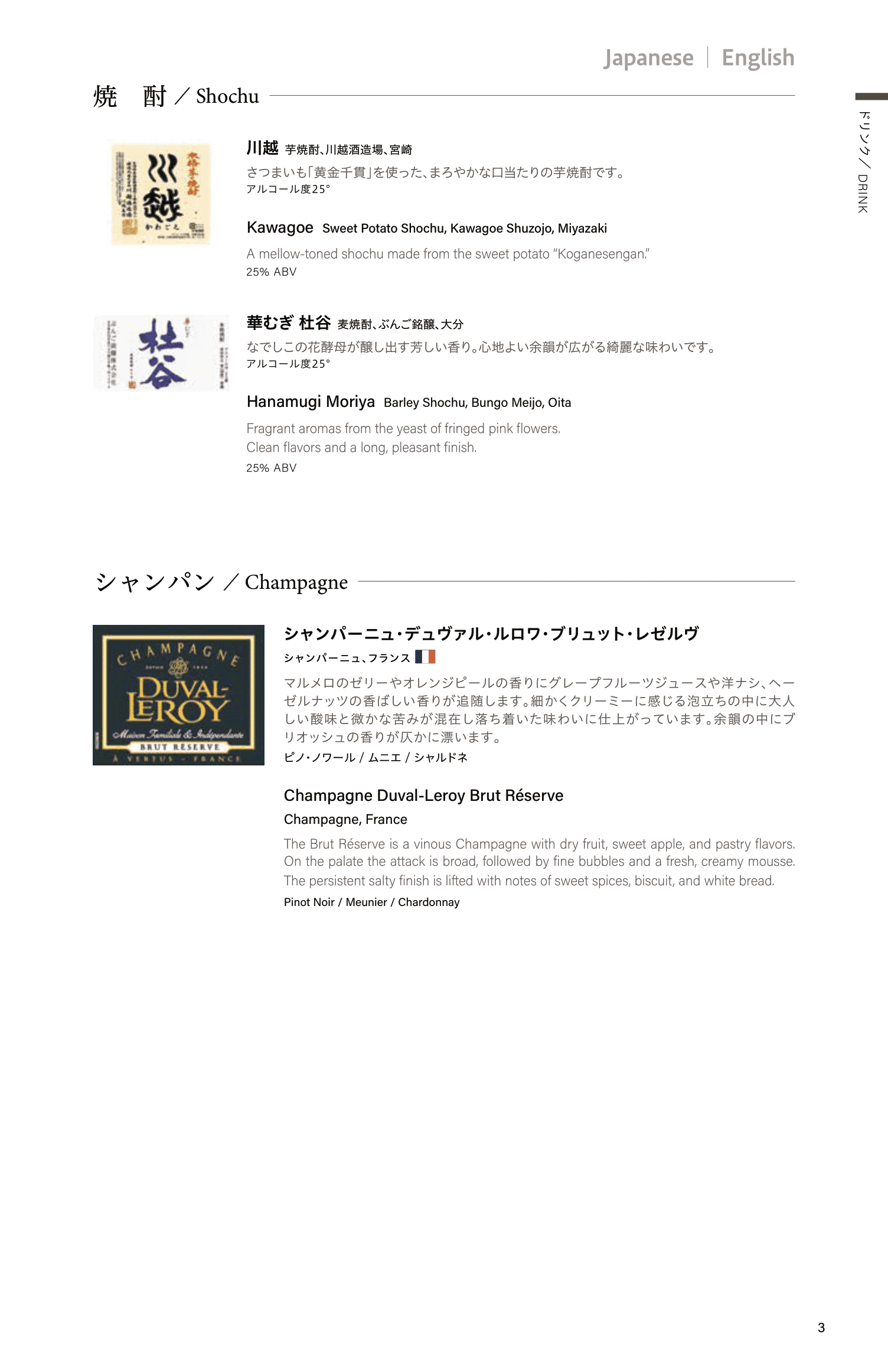 I asked to start the food and drink processions with a glass of the Duval-Leroy champagne, and then switched to the sake to accompany my meal.