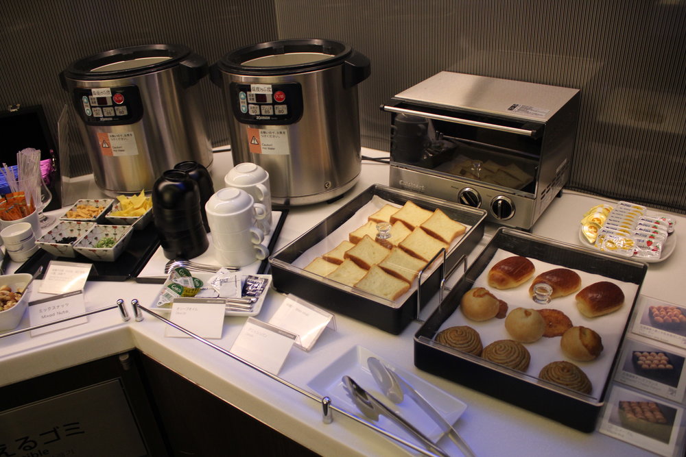 The food spread is rather modest for a First Class lounge. A good mix of Japanese and Western breakfast items had been put out, while a large portion of the buffet spread was taken up by the extensive beverage selection, including juices, coffee & tea, and premium spirits.