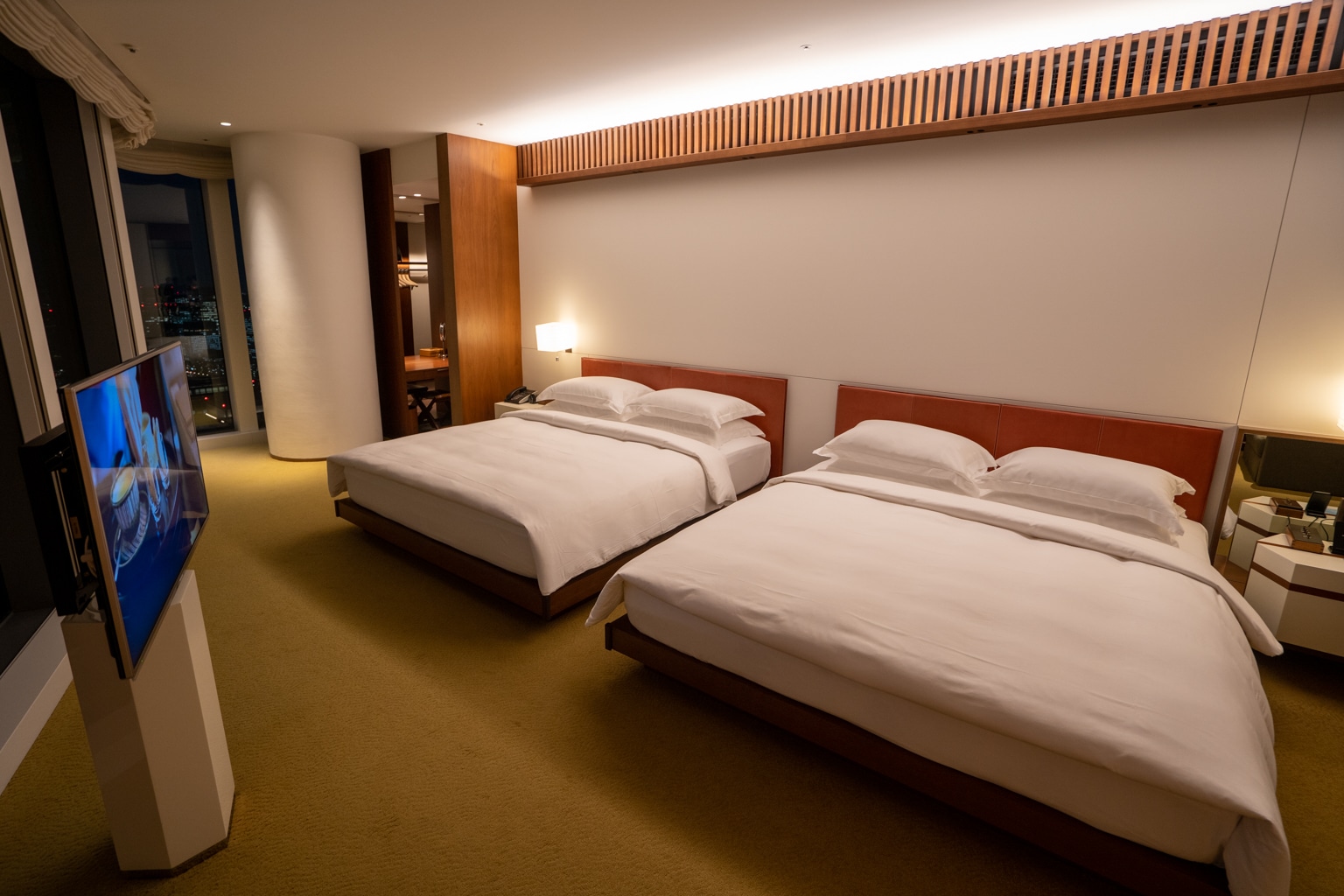 The corner room views are particularly impressive, offering panoramic views of the city, including Tokyo Tower from our particular vantage point.