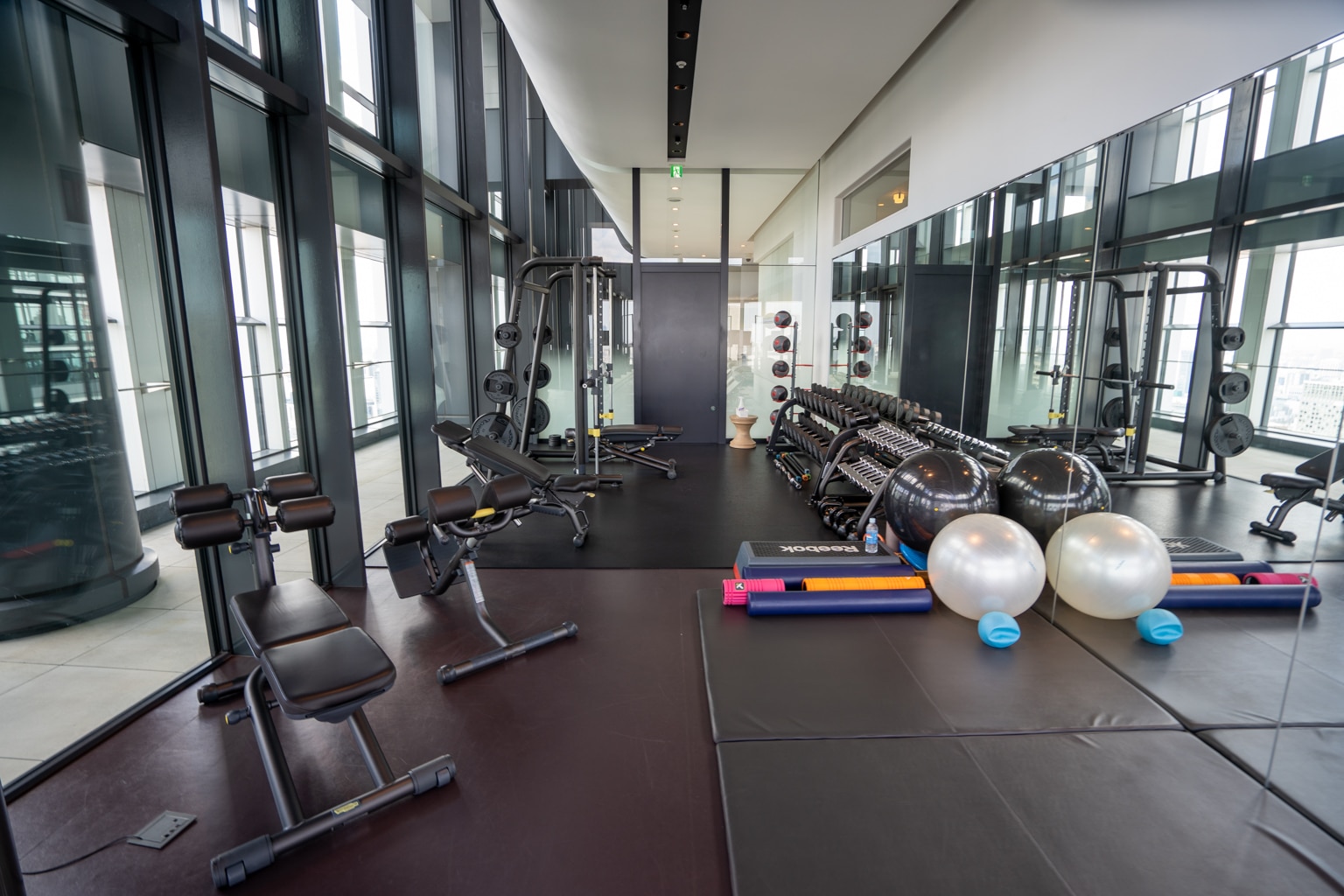 The fitness centre is located on the 37th floor. It’s a modern space with views of the Imperial Palace.