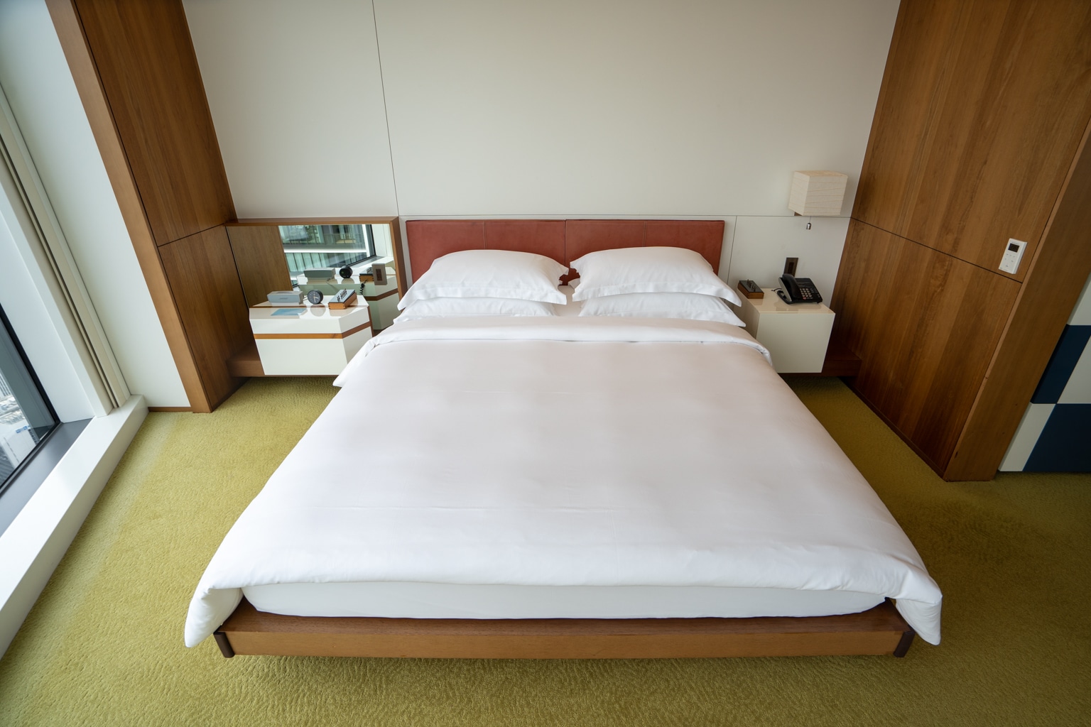 The king bed occupied the rest of the suite, well-positioned next to the windows for optimal views. On the side table is a comprehensive set of controls, where lights and blackout shades could be adjusted.