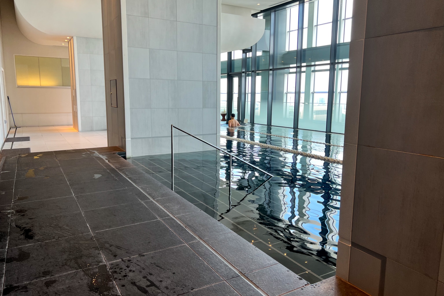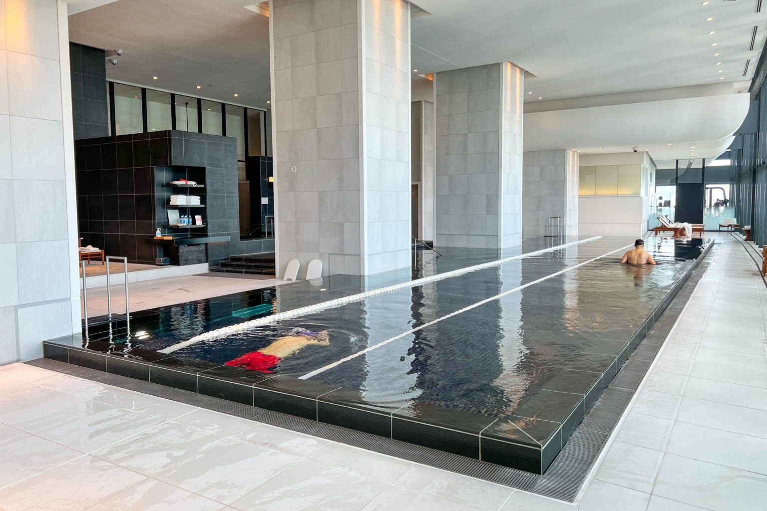 The pool is located directly next to the fitness centre. The infinity pool is large enough to swim a few laps and boasts views of the city below.