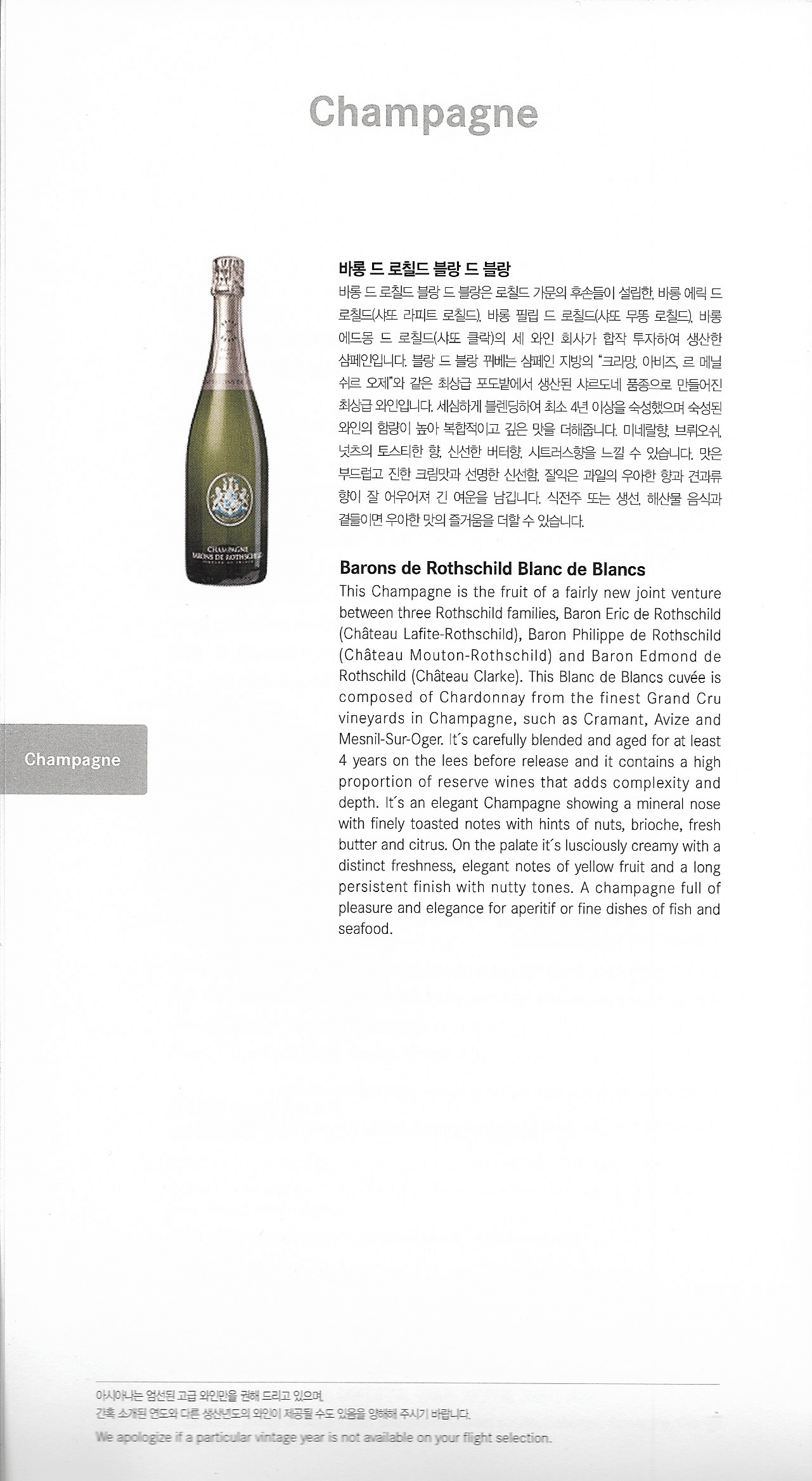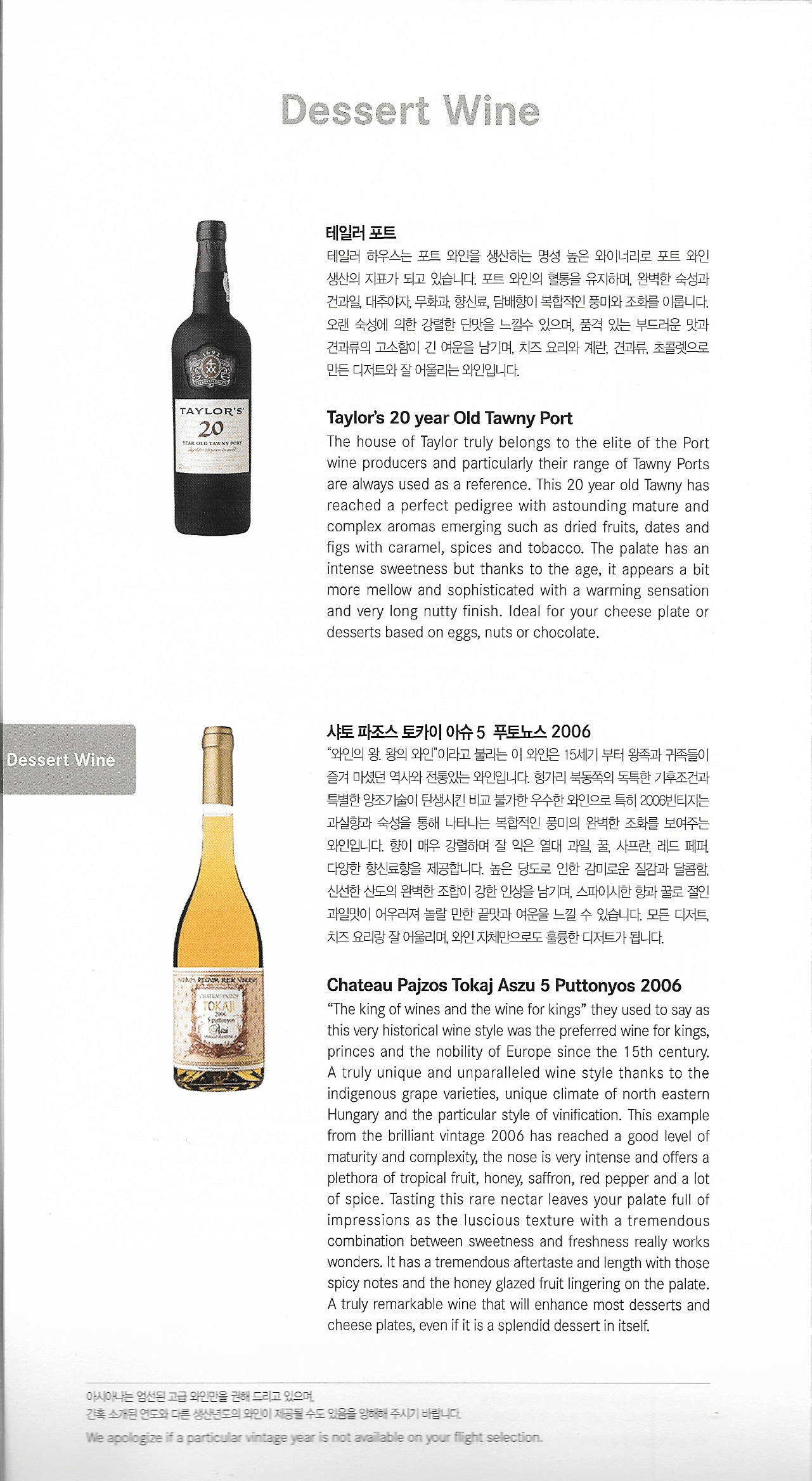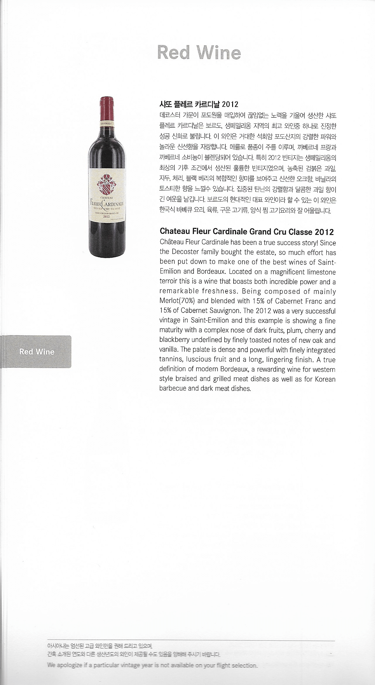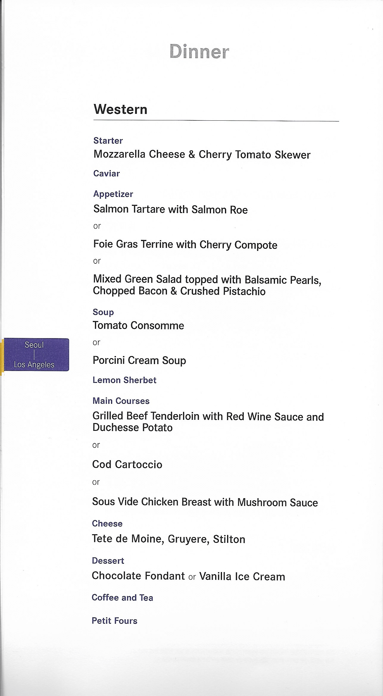 Asiana Airlines First Class – Menu and wine list