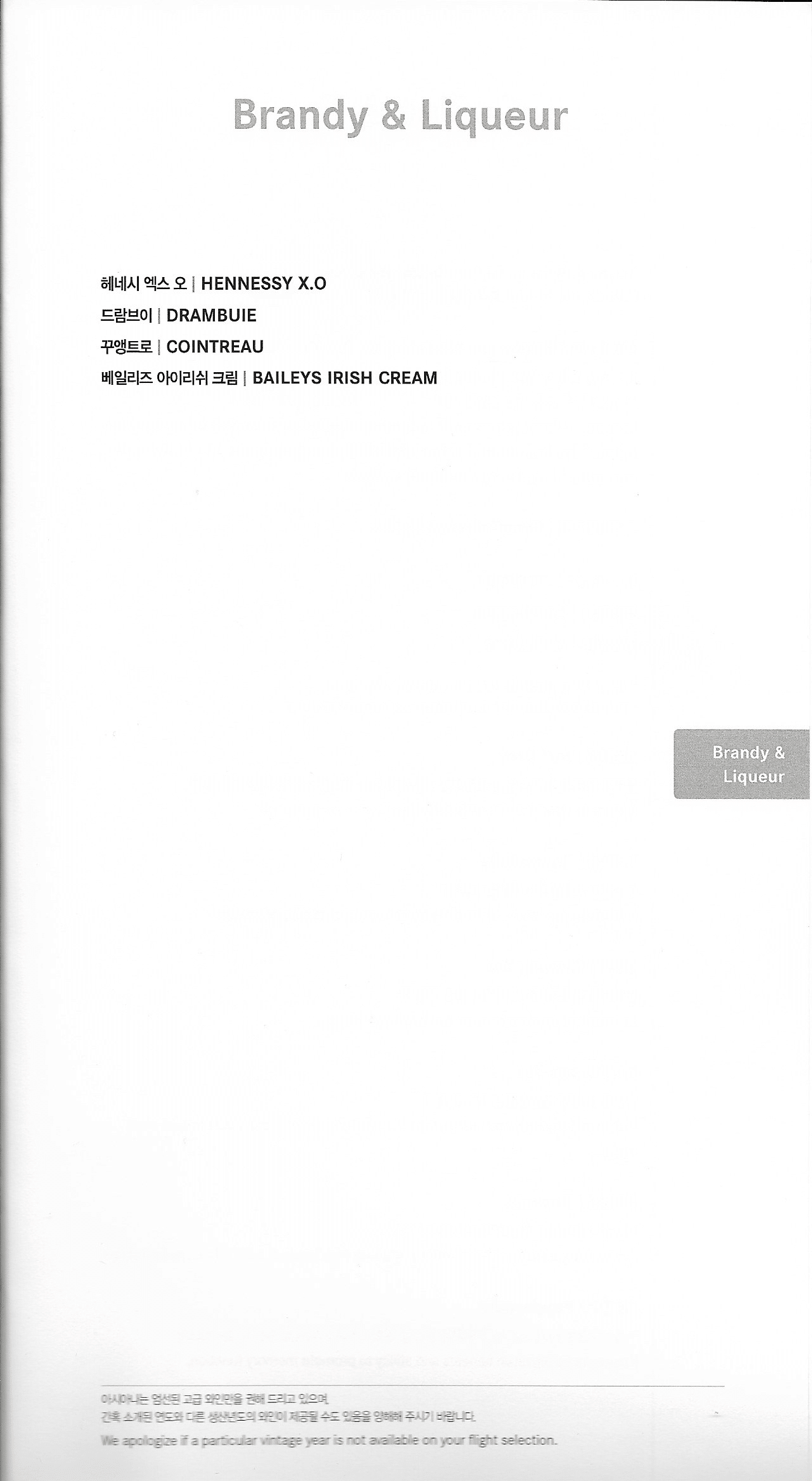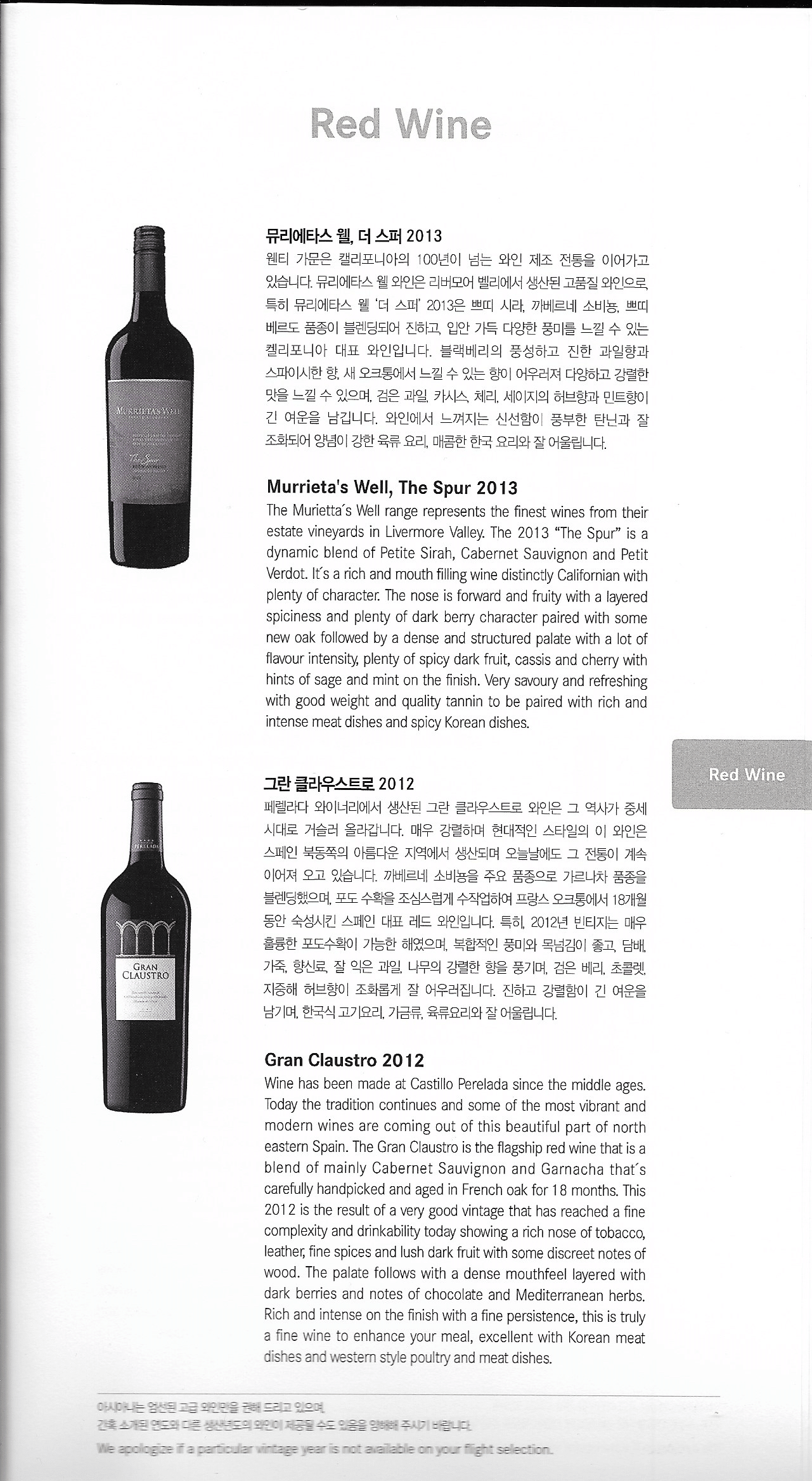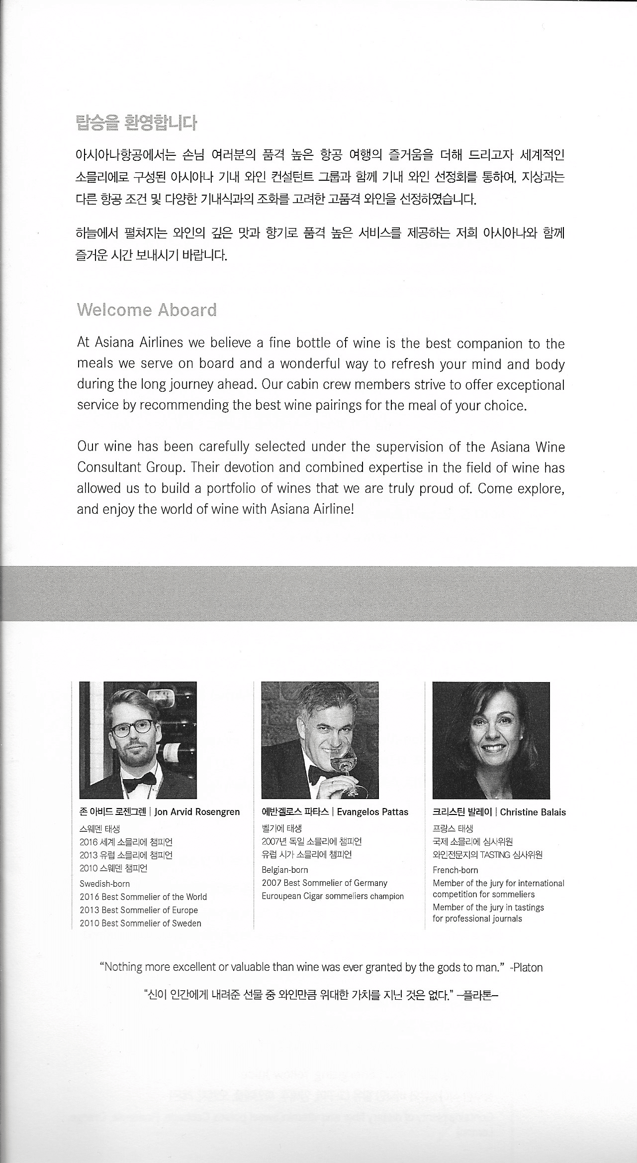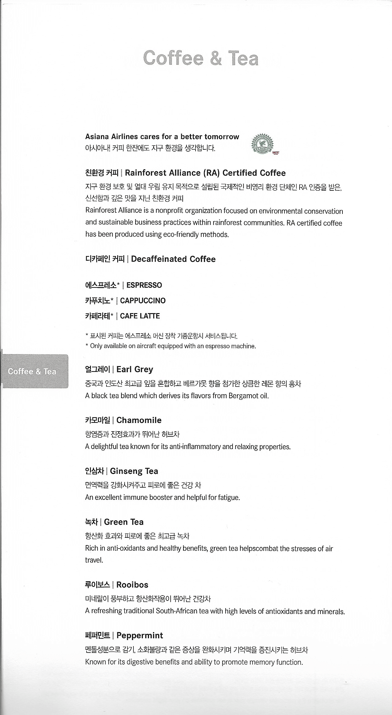 Asiana Airlines First Class – Menu and wine list