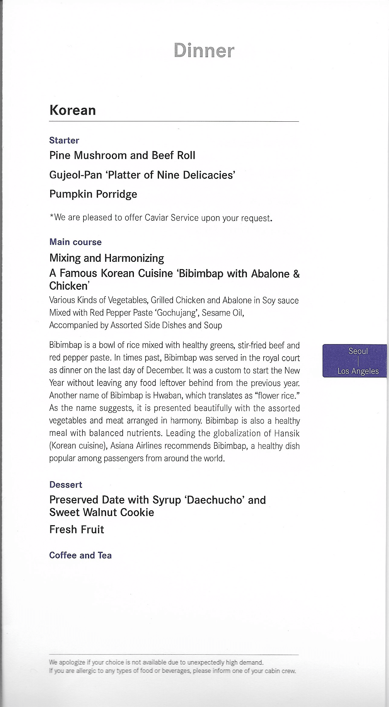 Asiana Airlines First Class – Bibimbap