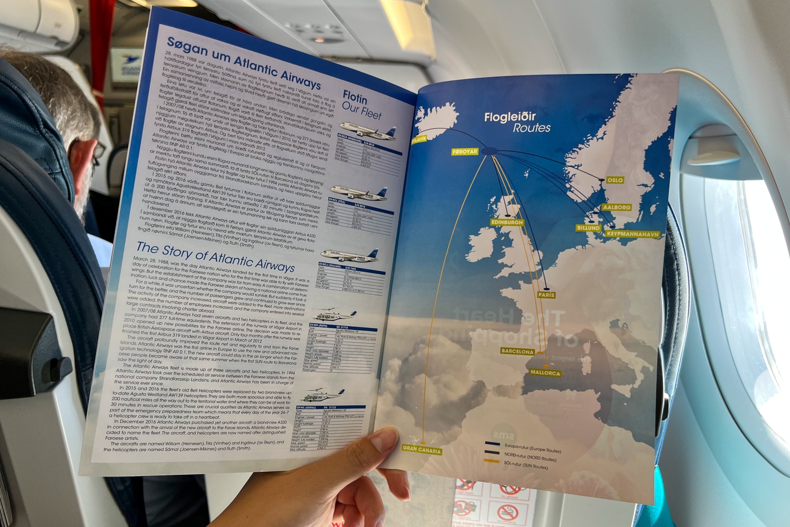 It showcased all of the routes around the Faroe Islands and the North Atlantic, including the route to Reykjavík that we were on. Furthermore, passengers with Atlantic Airways can take onward flights to Scandinavia, Edinburgh, Paris, Barcelona, Mallorca, and some sunnier destinations.