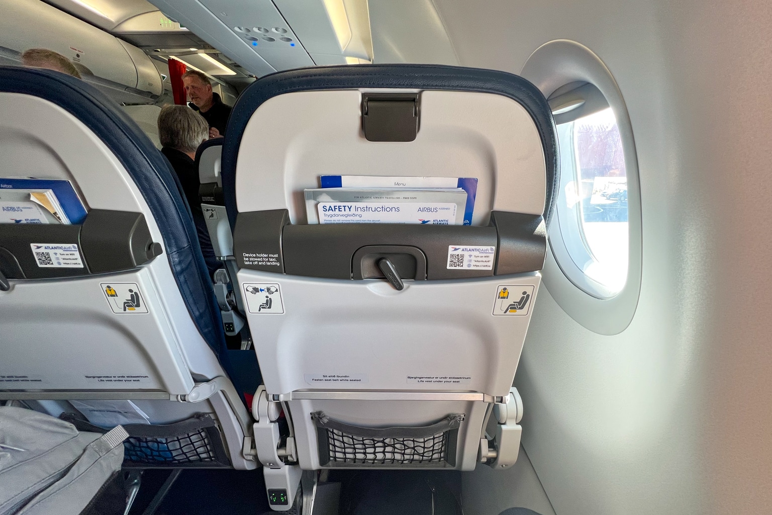 I first noticed the amount of leg room provided, which was quite respectable here on Atlantic Airways’s all-economy configuration.