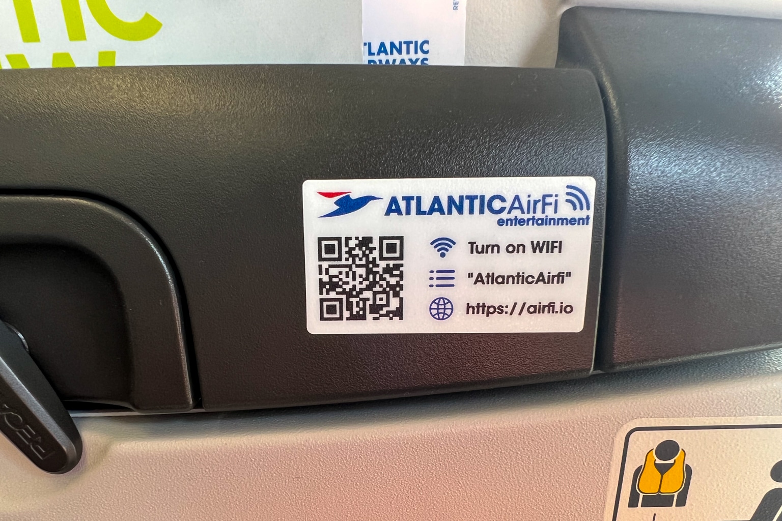 The onboard entertainment system, Atlantic AirFi, is an inflight Wi-Fi service that passengers can connect to and watch movies on a personal device.