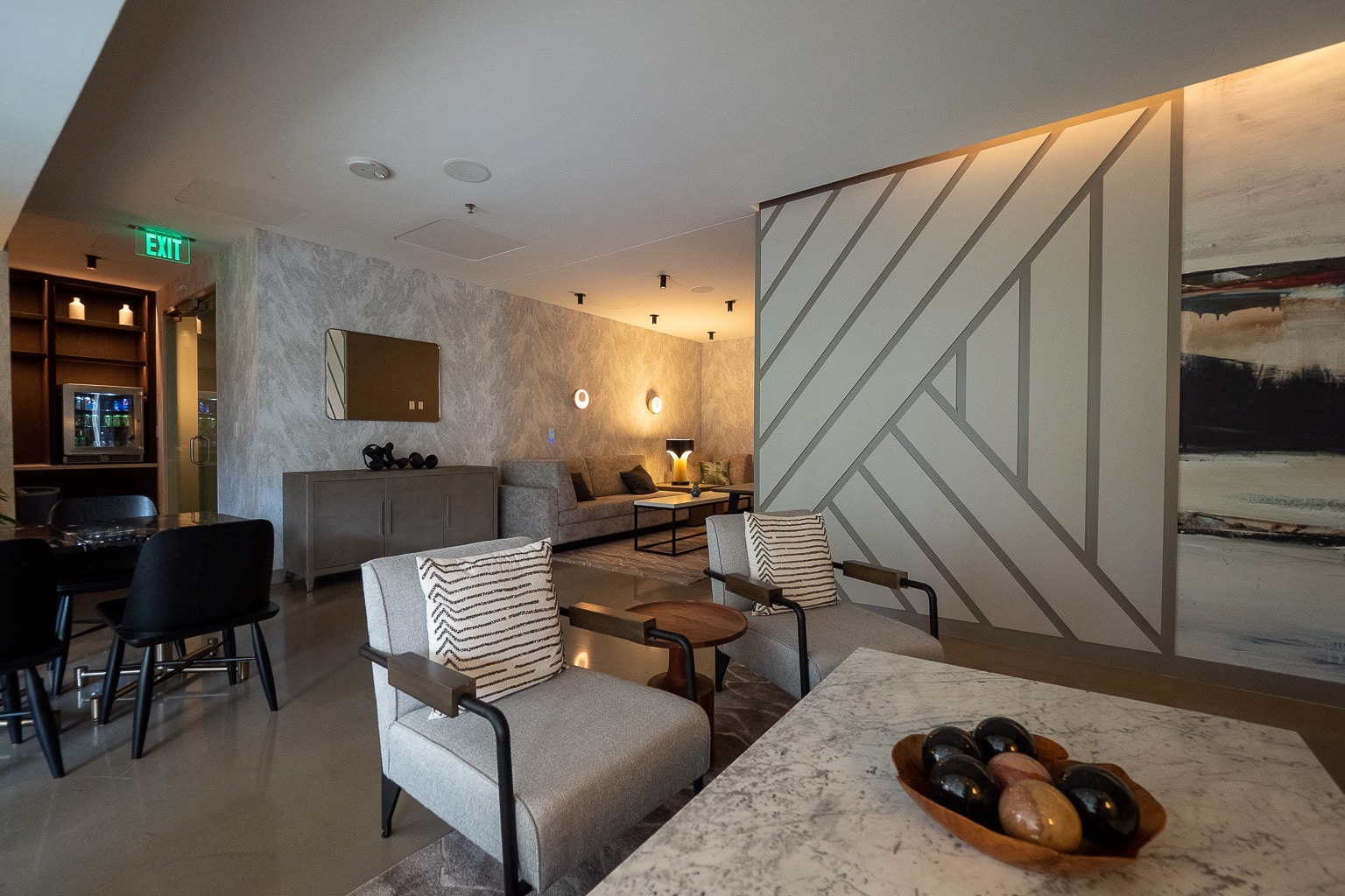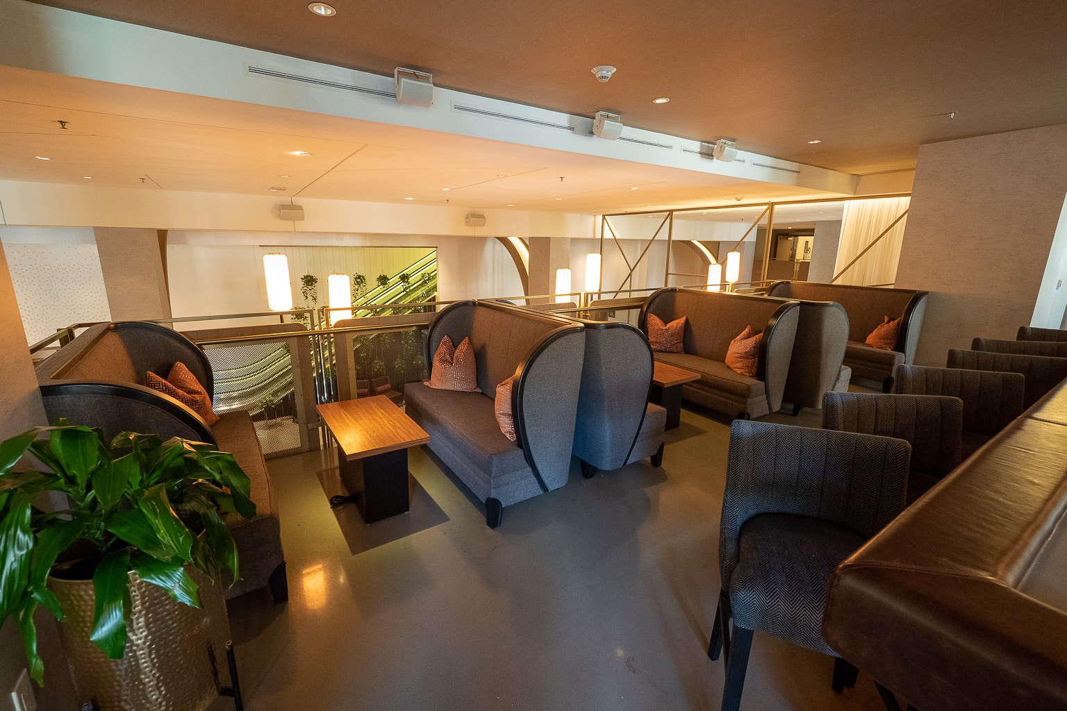 The cavernous lobby has a mezzanine level, with open views of Lobbyist and Corínne below. Up here, there’s an extension to Lobbyist which is only used for bar service for private receptions, but passing through the space was my primary access to the M Club.