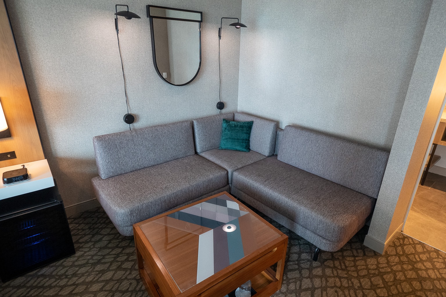 Prior to my arrival, I’d been upgraded to an available Studio Suite by virtue of my Titanium Elite status. I stayed in Room 1706, which shares an alcove with the adjacent room, although they don’t adjoin directly from inside.