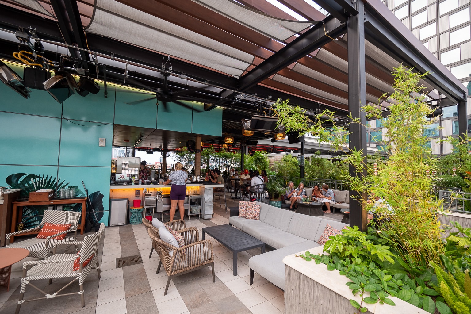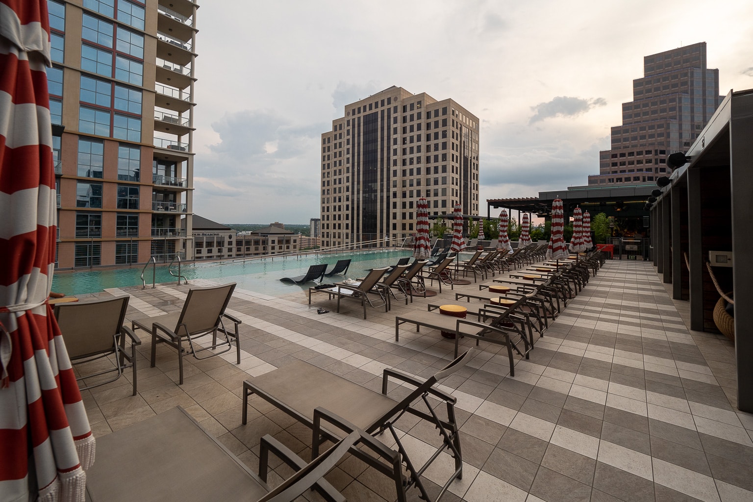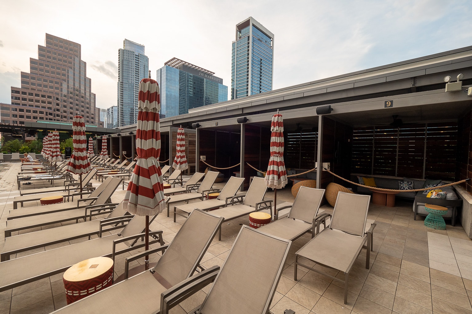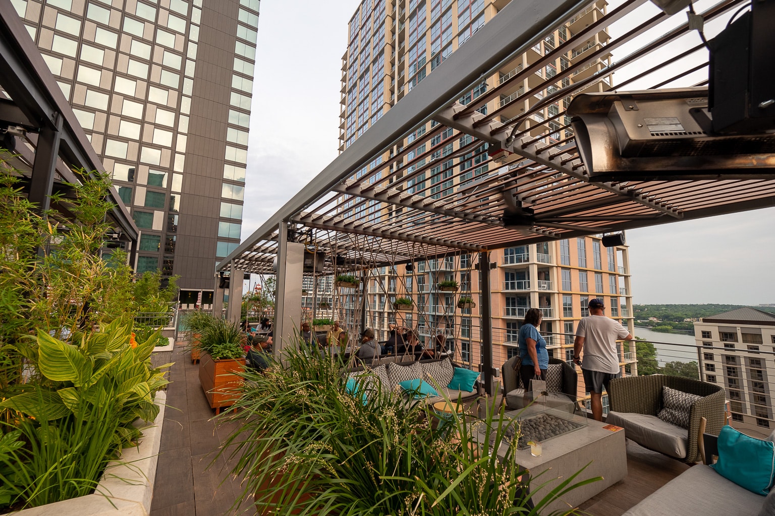 The heartbeat of the Austin Marriott Downtown is the seventh floor, a rooftop terrace atop the building’s conference facilities in the shadow of the guest room tower beside.