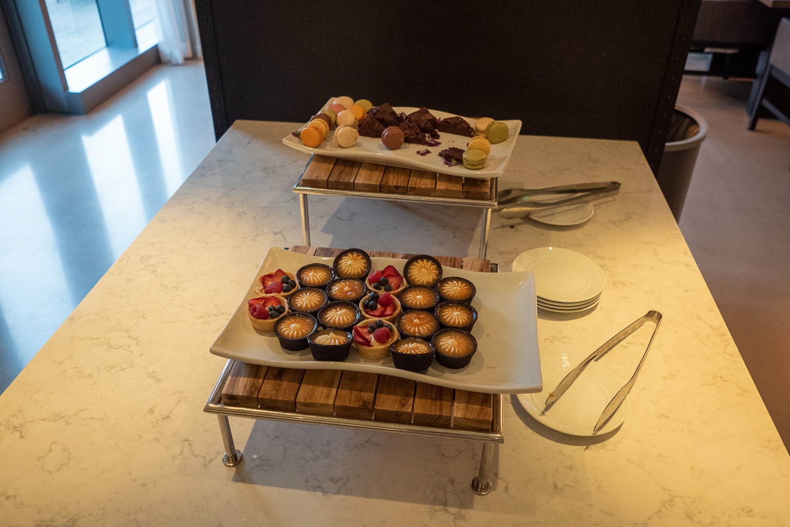 Breakfast for Platinum, Titanium, and Ambassador Elite members is served in the Executive Lounge, which is officially known as M Club. The lounge is located on the mezzanine, and is best accessed from a stairwell in the lobby.