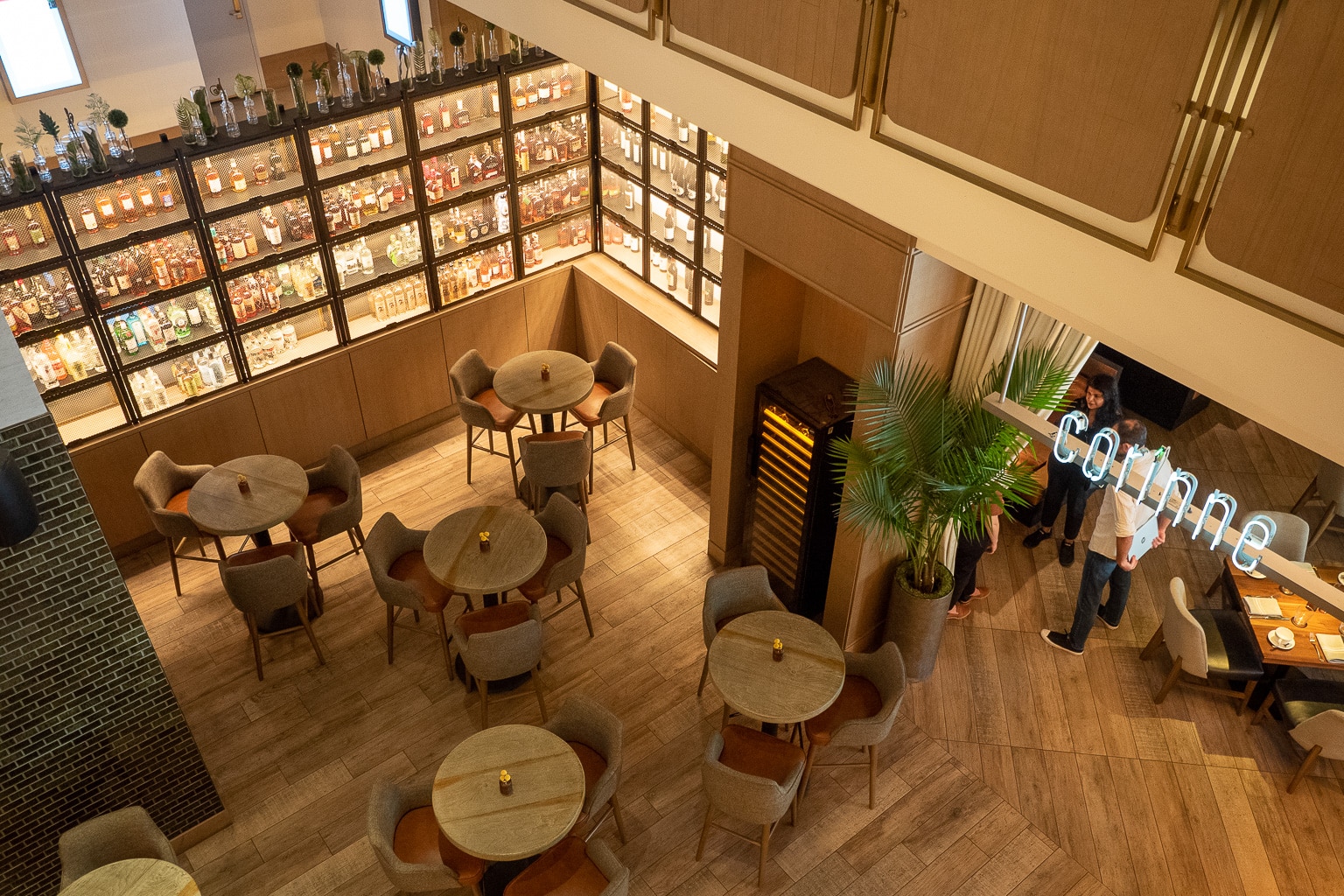 Behind it, you can enter Corínne, the property’s primary restaurant. There’s a nice lounge atrium at the entrance, flanked by well-arranged walls of whiskey.