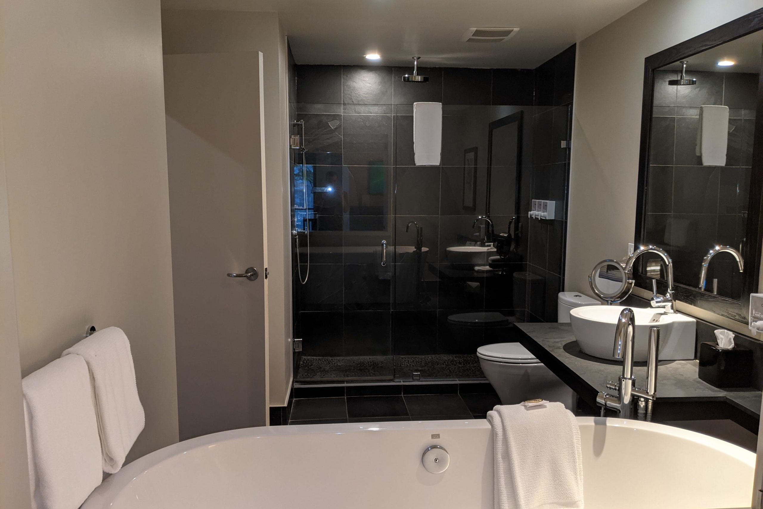 In my experience, the bathrooms in the resort are all fairly similar and offer a number of nice touches. I am a sucker for heated floors, which are especially nice after a long run on the town’s trails or after a day spent surfing the chilly ocean waters. There is a rain shower with a textured rocky floor and a soaker tub, too.