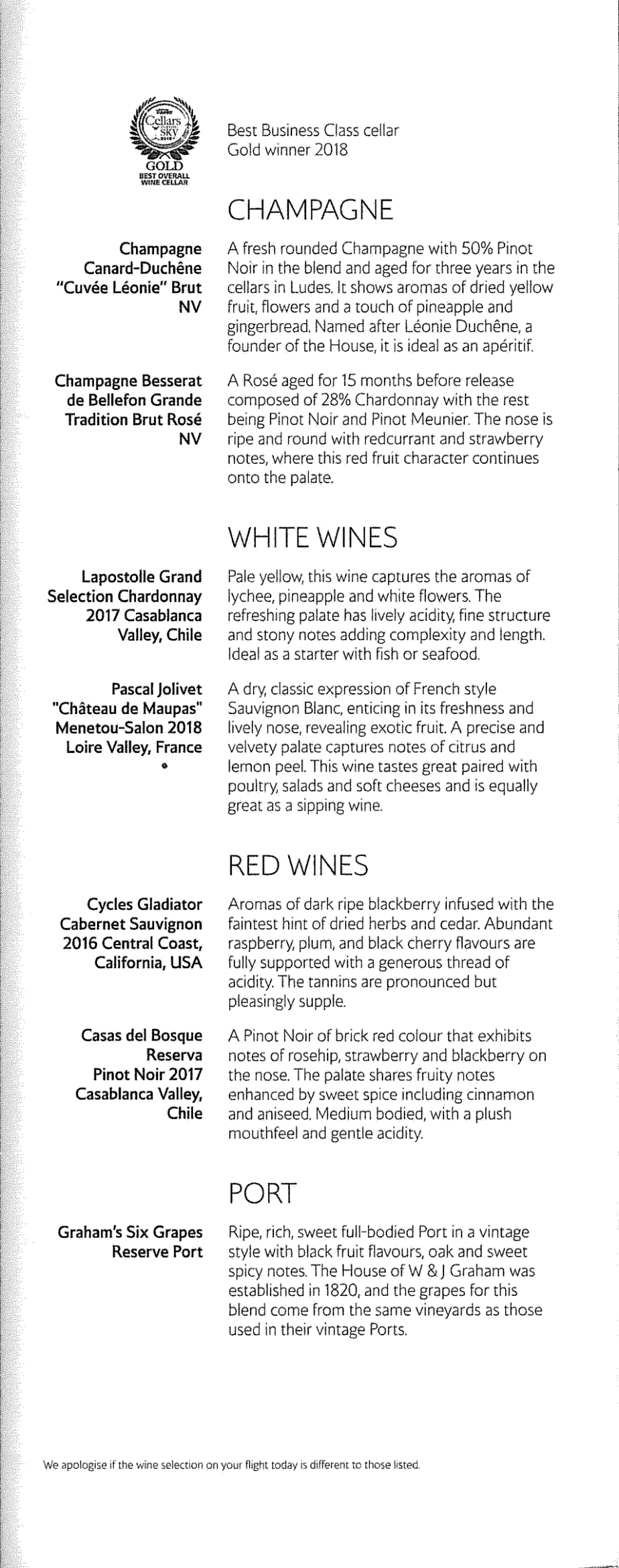 The menu is stored behind the footrest, along with the standard magazine and other airline-related literature.