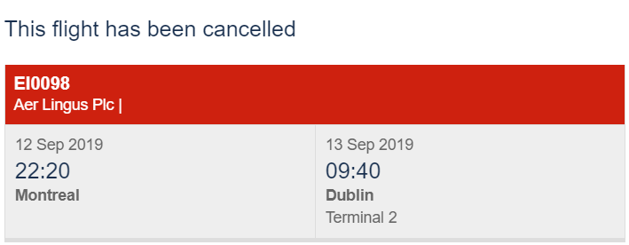 Disappointed, I called in to British Airways Executive Club to see what had happened. The agent informed me that Aer Lingus had cancelled all flights from Montreal to Dublin (and vice-versa) pending the delivery of new aircraft.