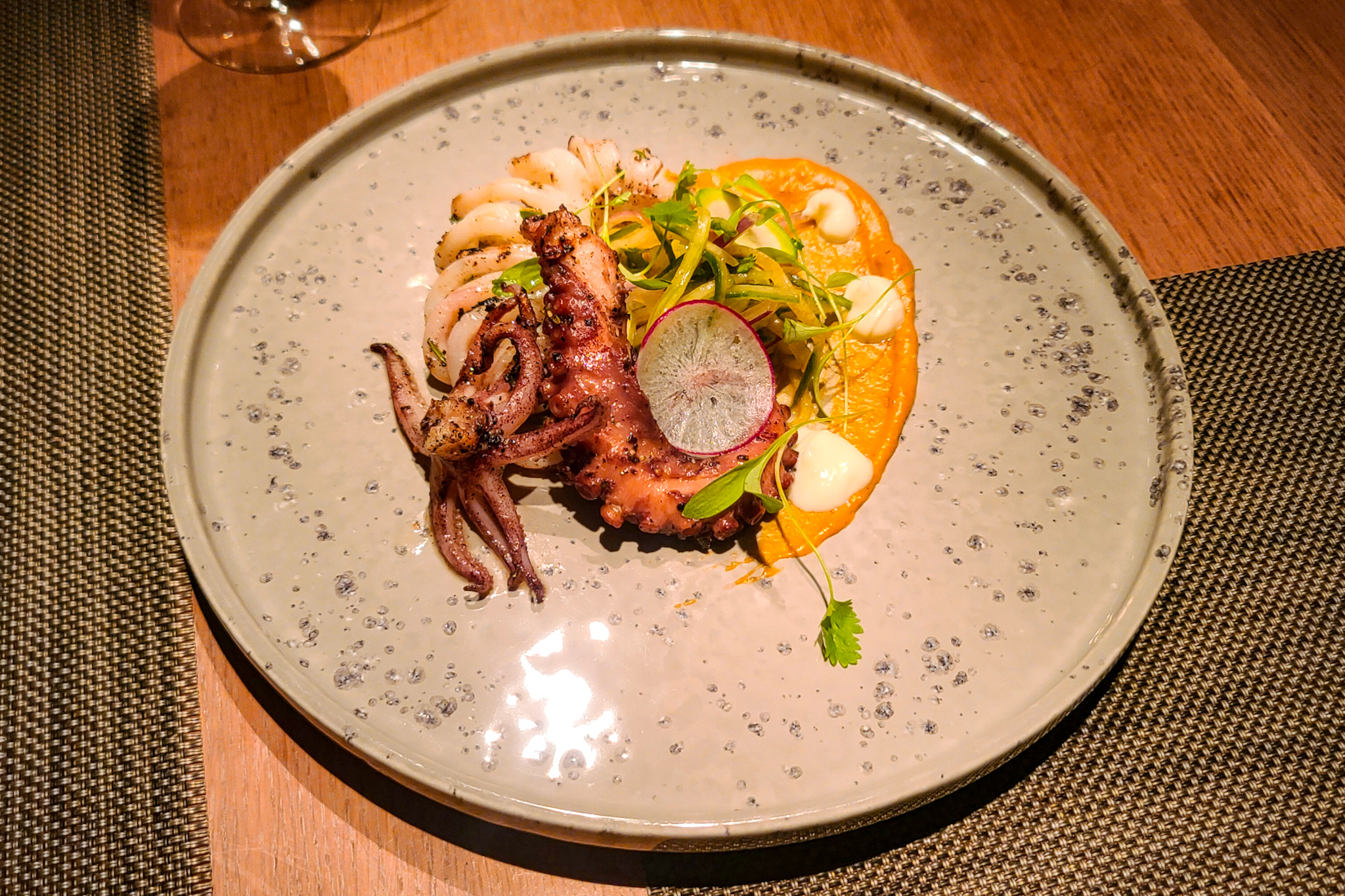 Both the grilled octopus and calamari were cooked perfectly tender, with a crispy outside. The creamy coconut cashew sauce and airy citrus crème fraîche complemented the smokiness of the grilled seafood.