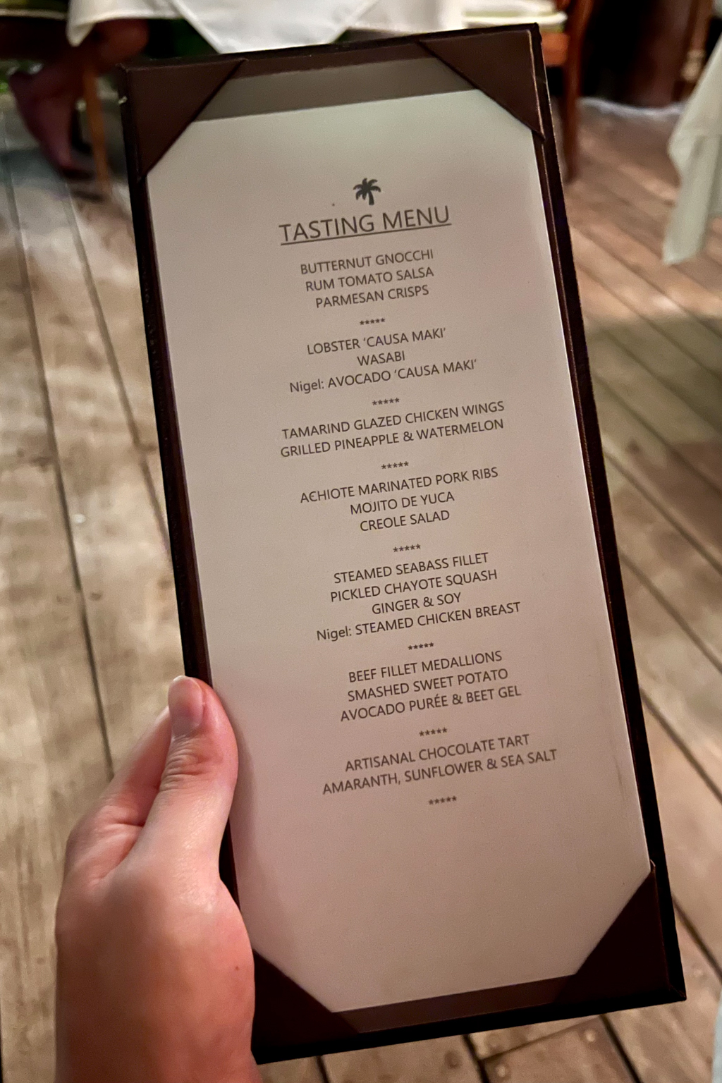 The second night’s tasting menu read as follows: