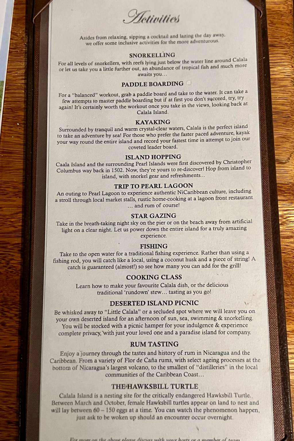 Calala Island – Activities