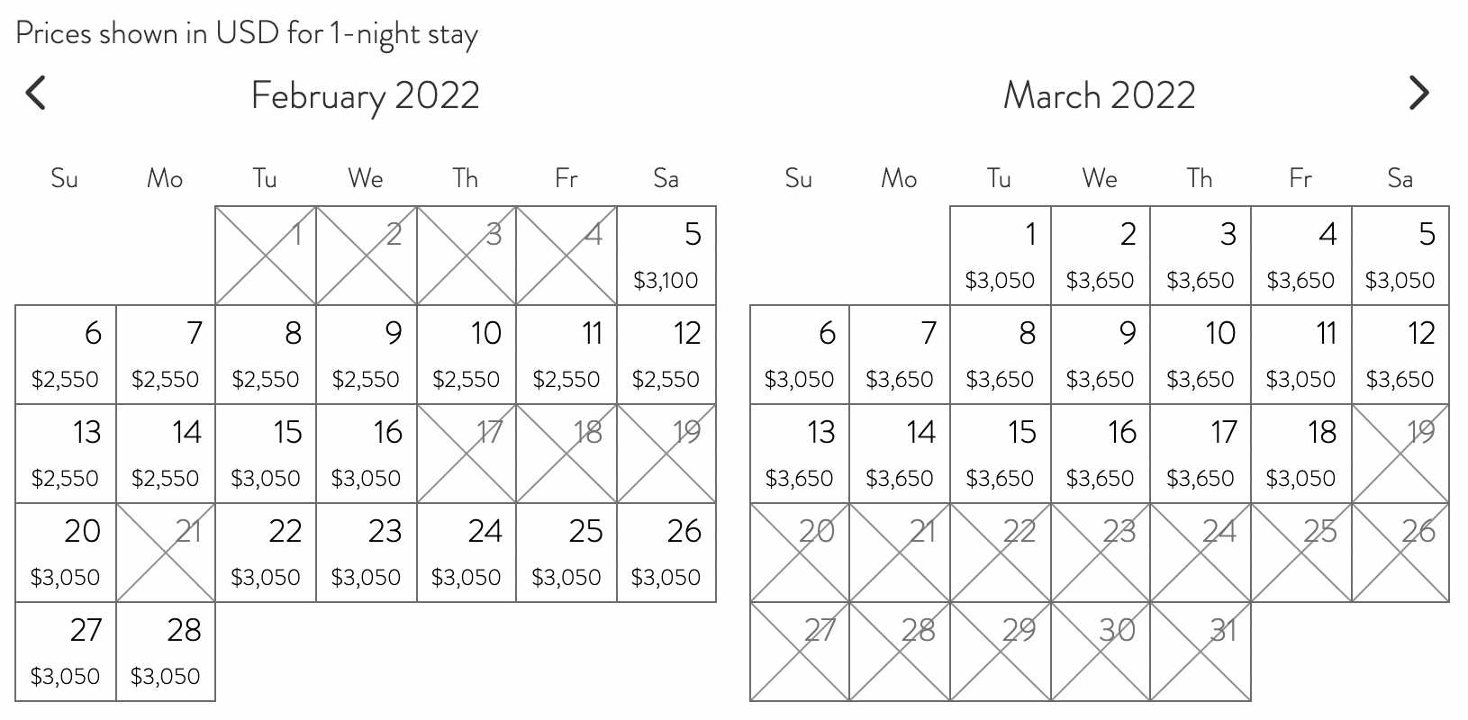 As you can imagine, a stay at Calala Island doesn’t come cheap. The paid nightly rate starts at US$2,350 per night in the low season and reaches as high as US$3,650 per night in the high season. Given the logistics of travelling to and from the island, the resort imposes a three-night minimum stay.