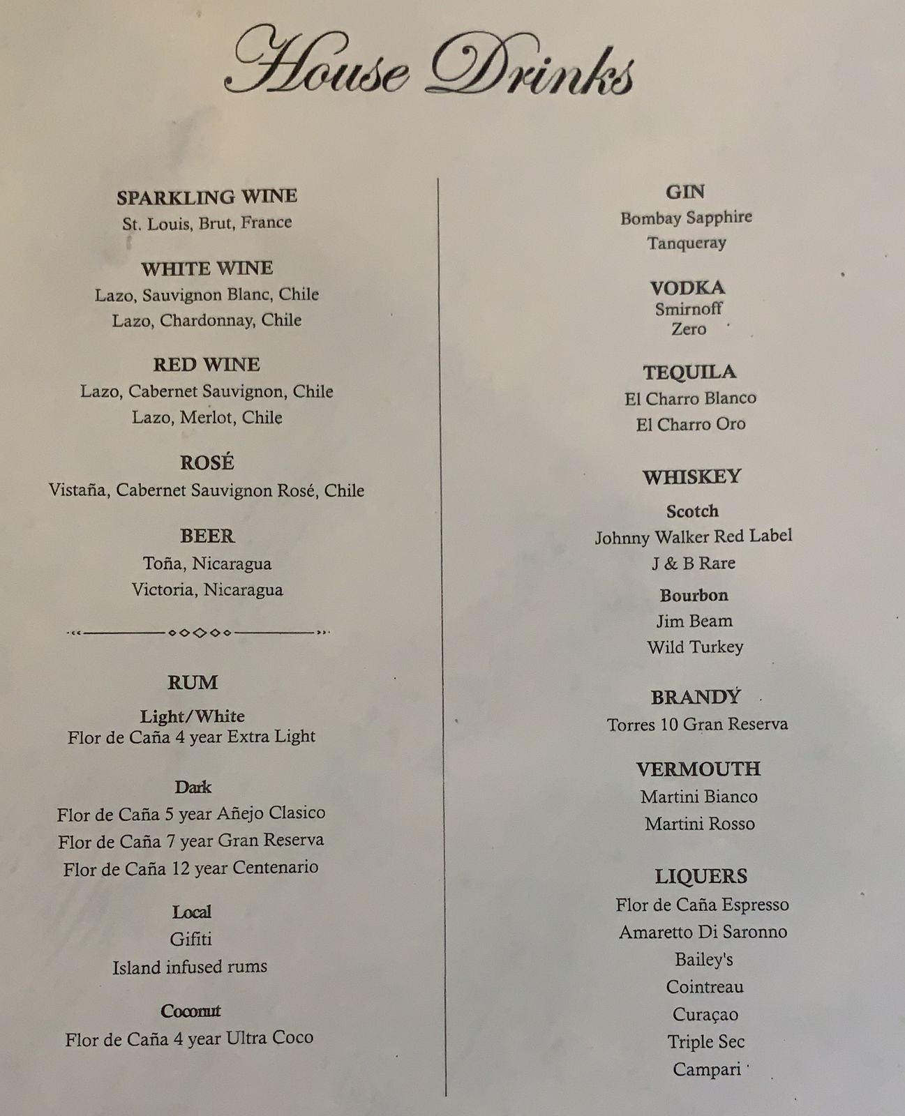 The bar menu reads as follows.
