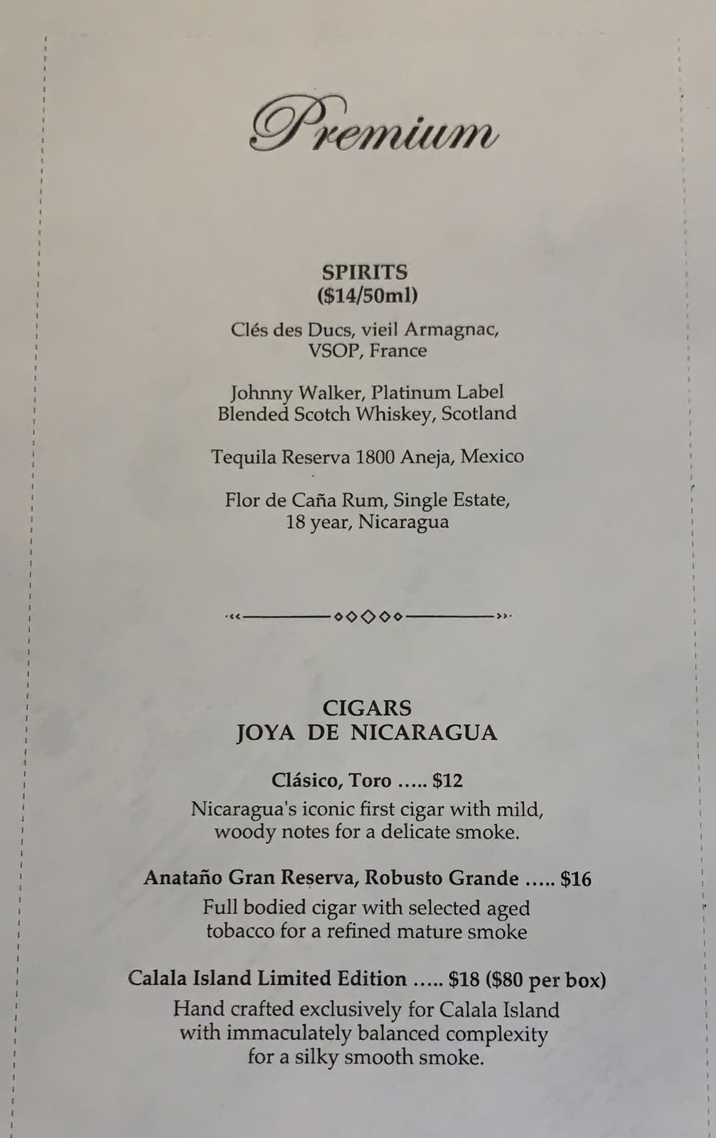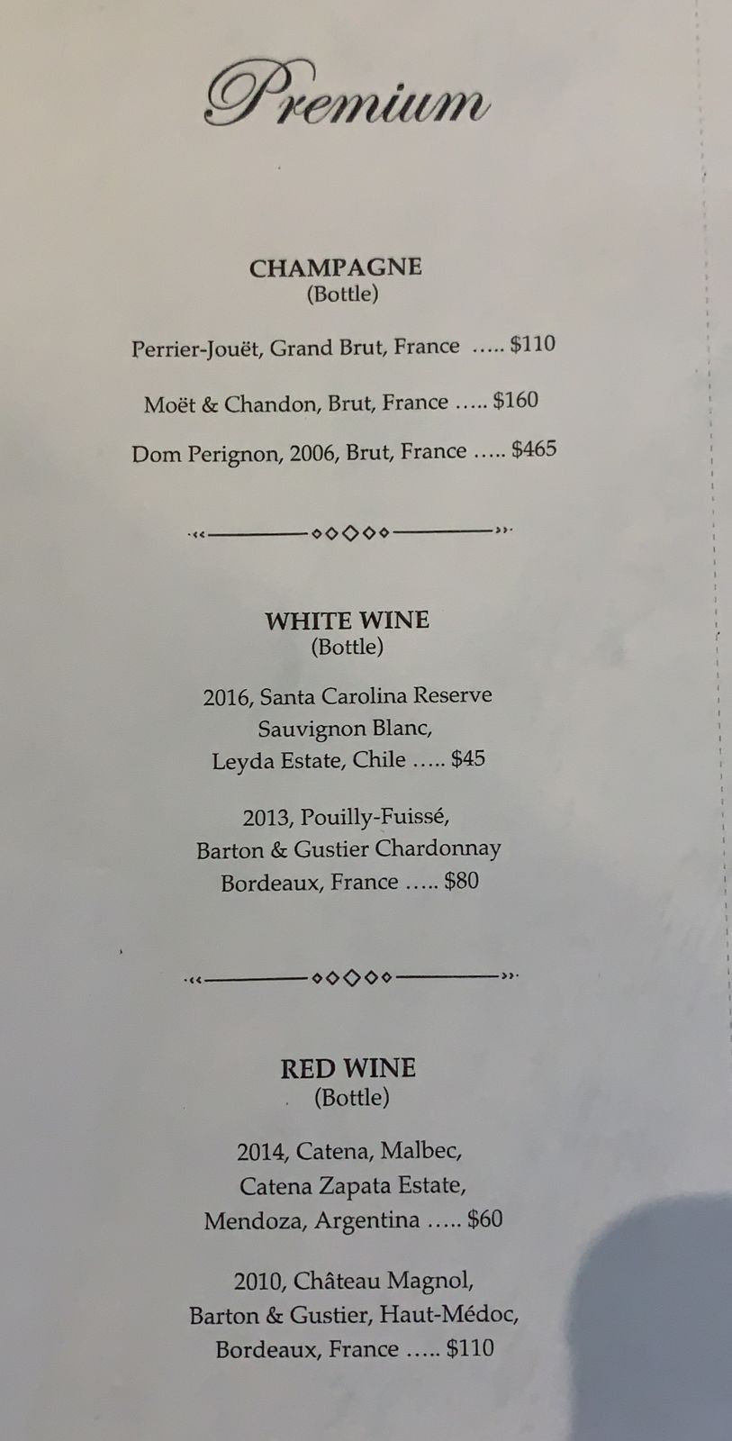 Note that there’s an additional list of premium spirits that you can opt to pay for, although we were totally happy with ordering from the regular drinks menu to our hearts’ content.