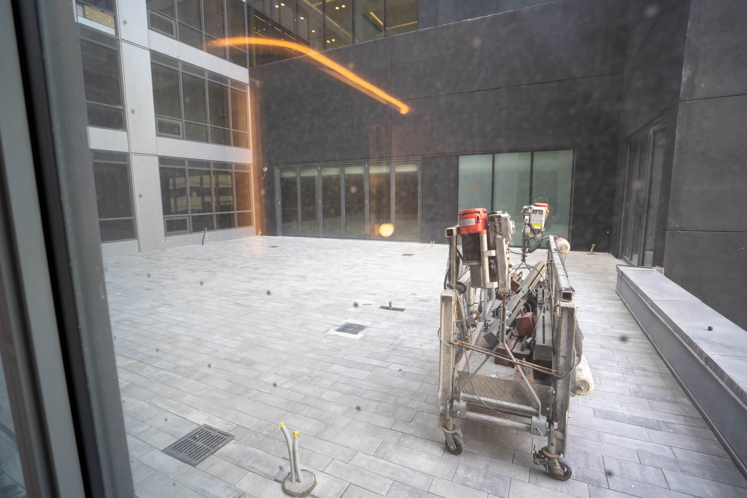The entrance is accented with touches of copper, serving as a pop of colour against the darker tones of the building. At the time of my visit, the entrance was still undergoing some finishing touches.