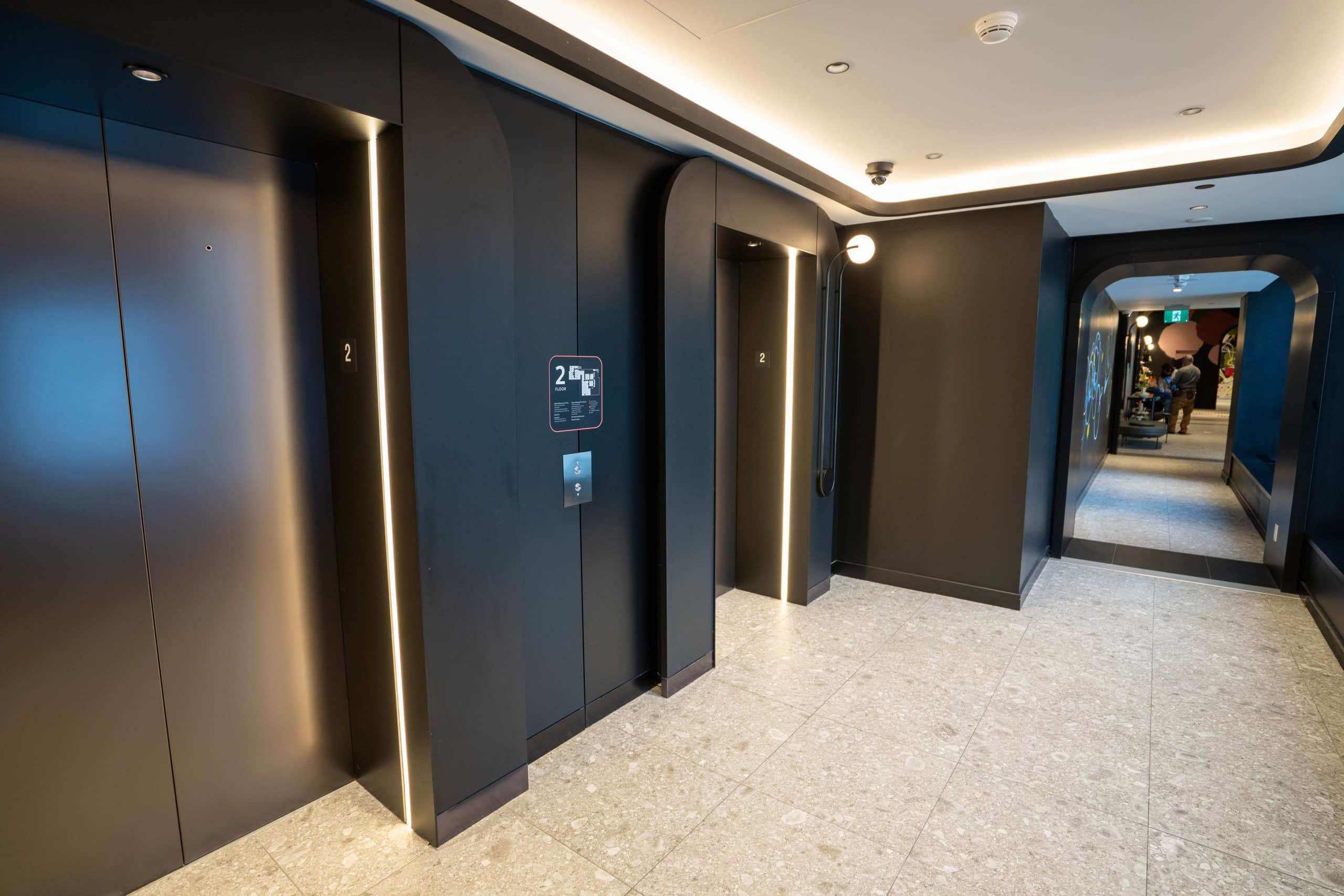 A set of elevators then whisks you up to the lobby floor on the second level, where you’ll find a separate set of elevators to take you up to the guest rooms – an elevated design practice that’s typically only found in higher-end hotels.