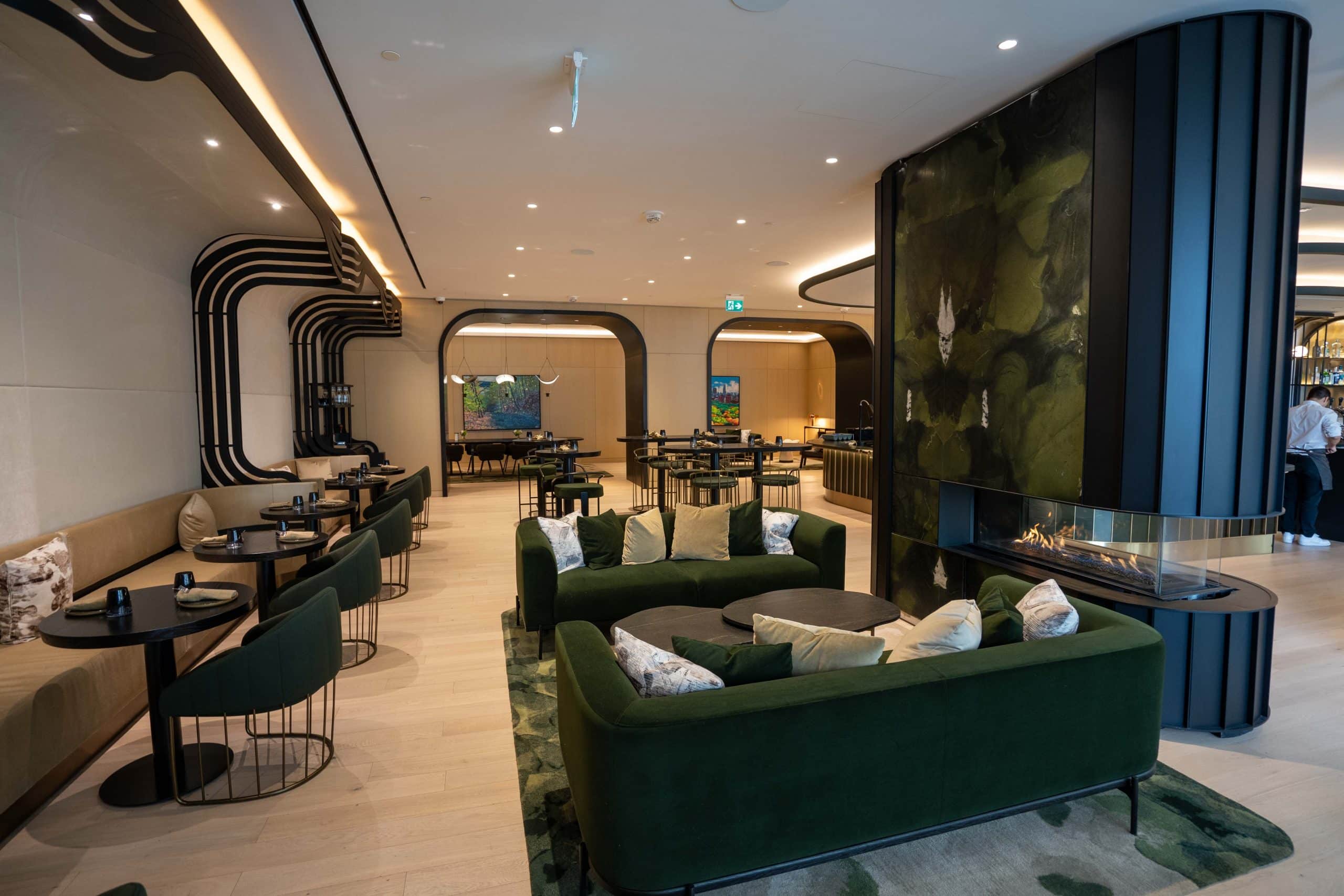The restaurant is quite luxe with elegant décor and adorned in tones of emerald green, gold, and grey.