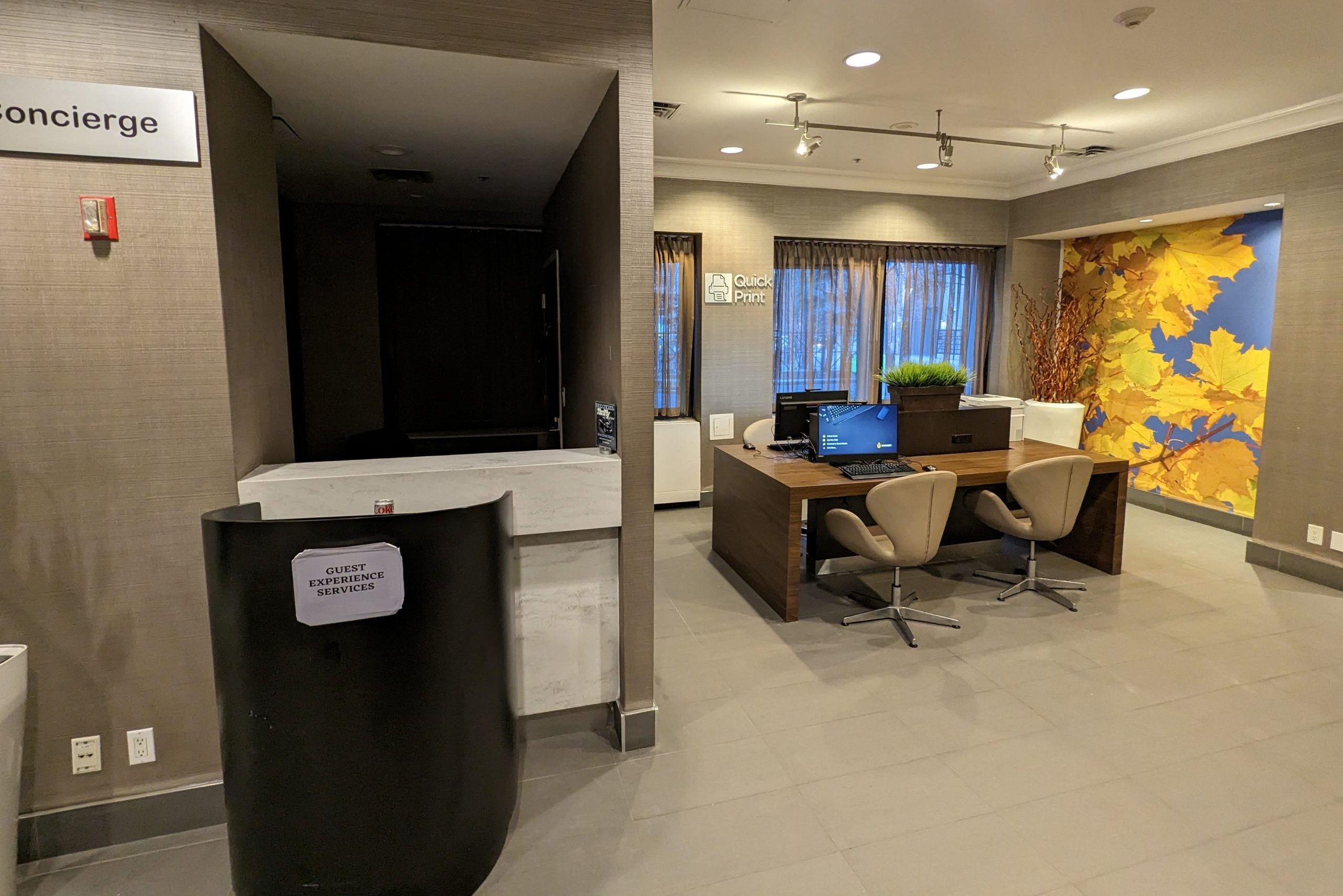 Next to the front desk area is an open seating area. During the day, it has a concierge desk for guests looking to find out more information regarding their surroundings, and provides a good place to sit and wait for an Uber or taxi to arrive to take you to the airport or elsewhere.
