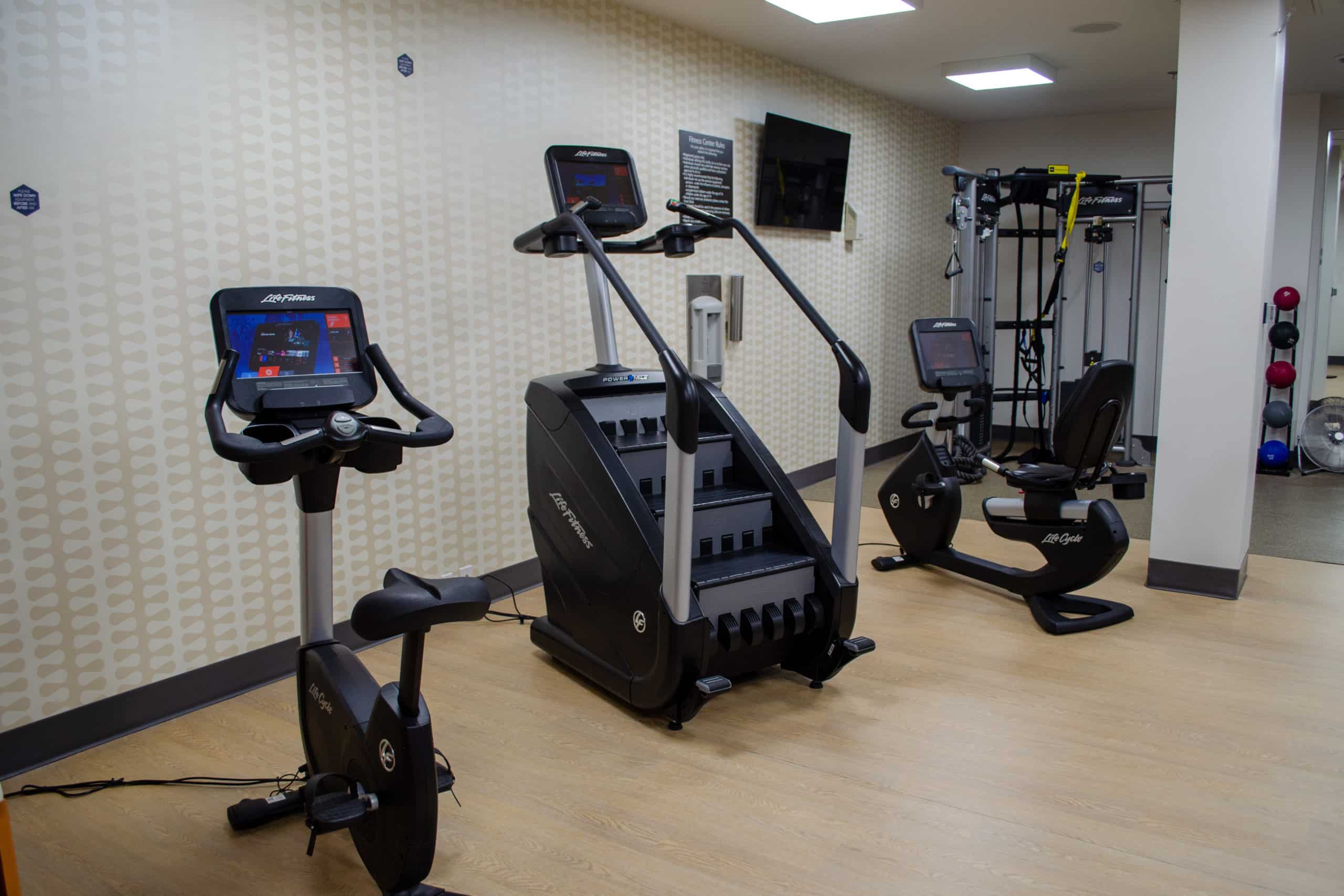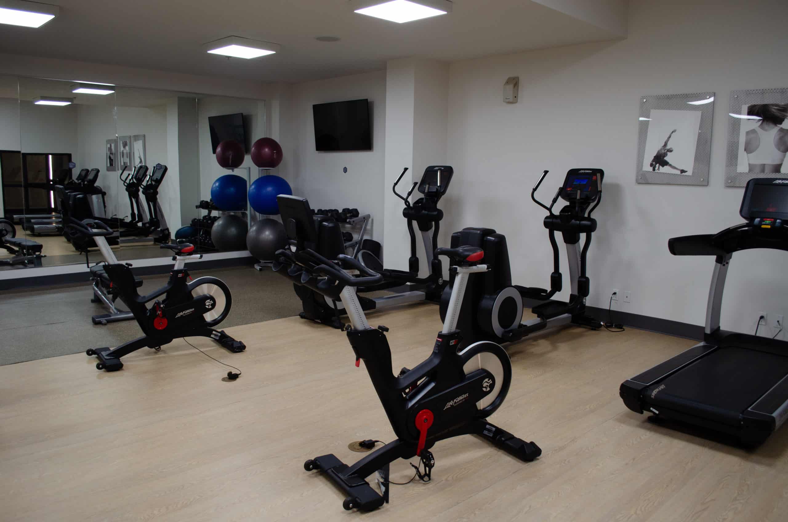 The equipment in the fitness centre is all relatively new, and overall, the space is fairly well appointed. You’ll find treadmills, elliptical machines, exercise bikes, and a stair machine, as well as some free weights and strength training equipment.