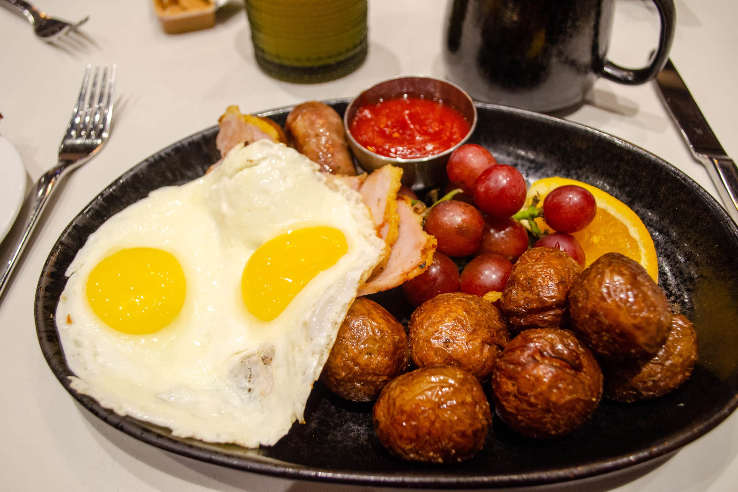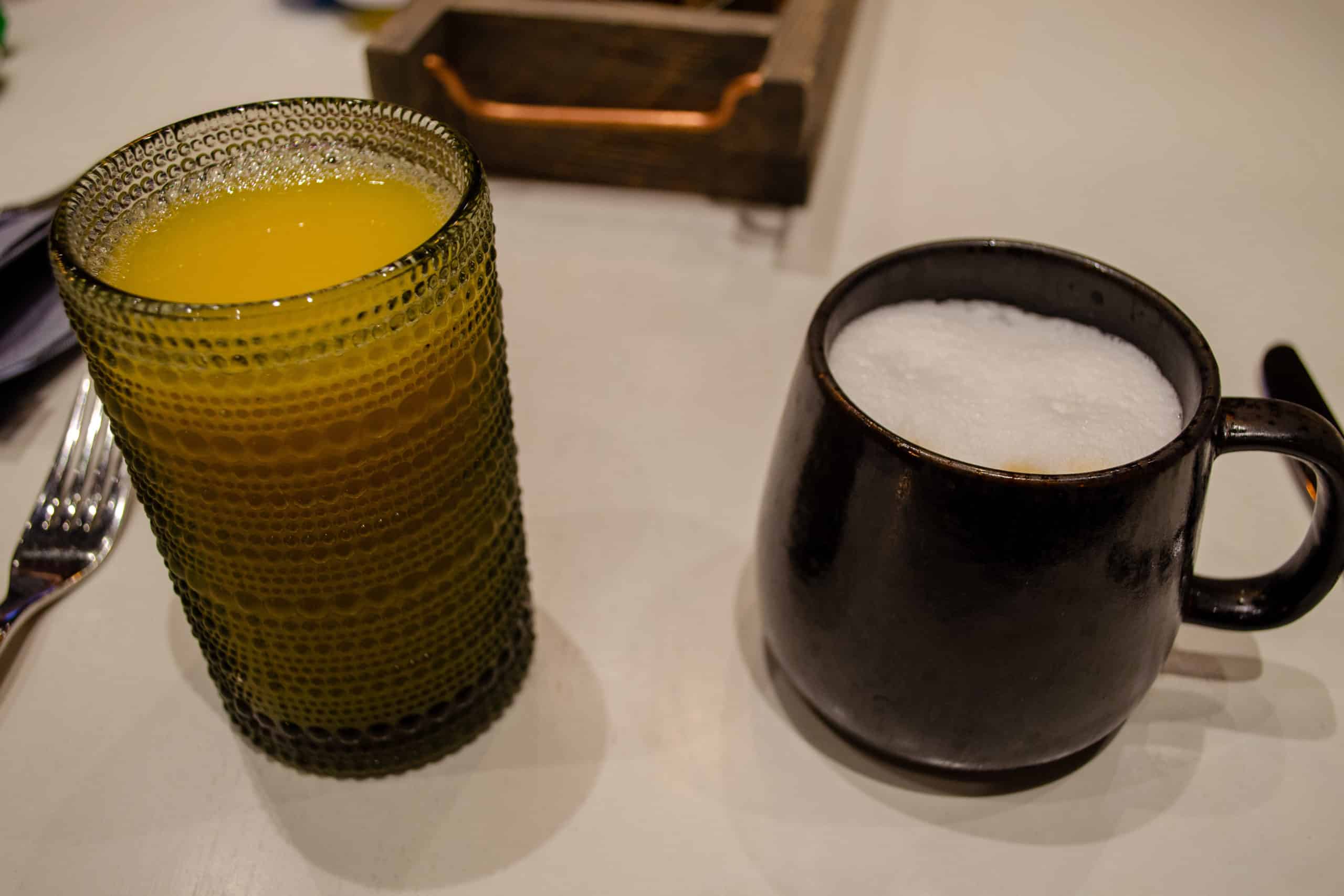 After giving the waitress my breakfast voucher, she kindly informed us that we could order any two items from the à la carte menu, as well as a coffee product and juice.