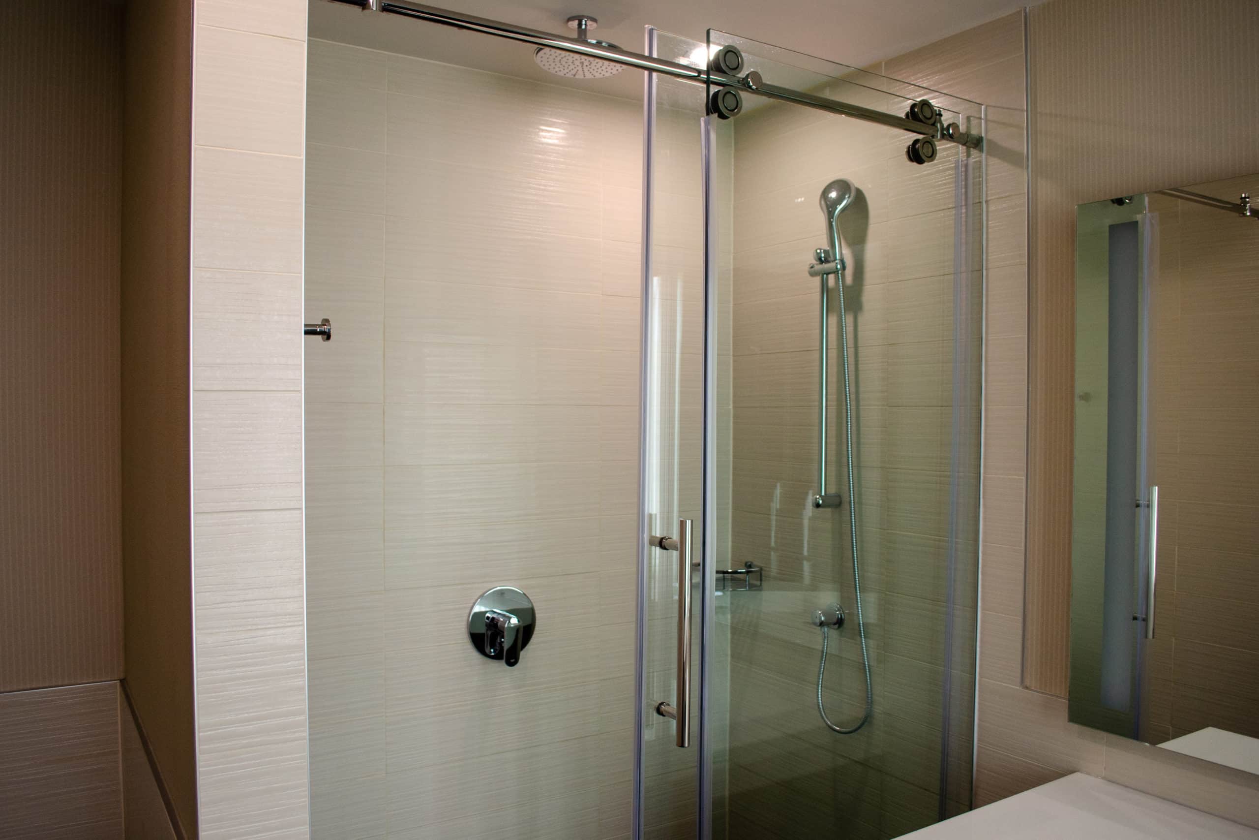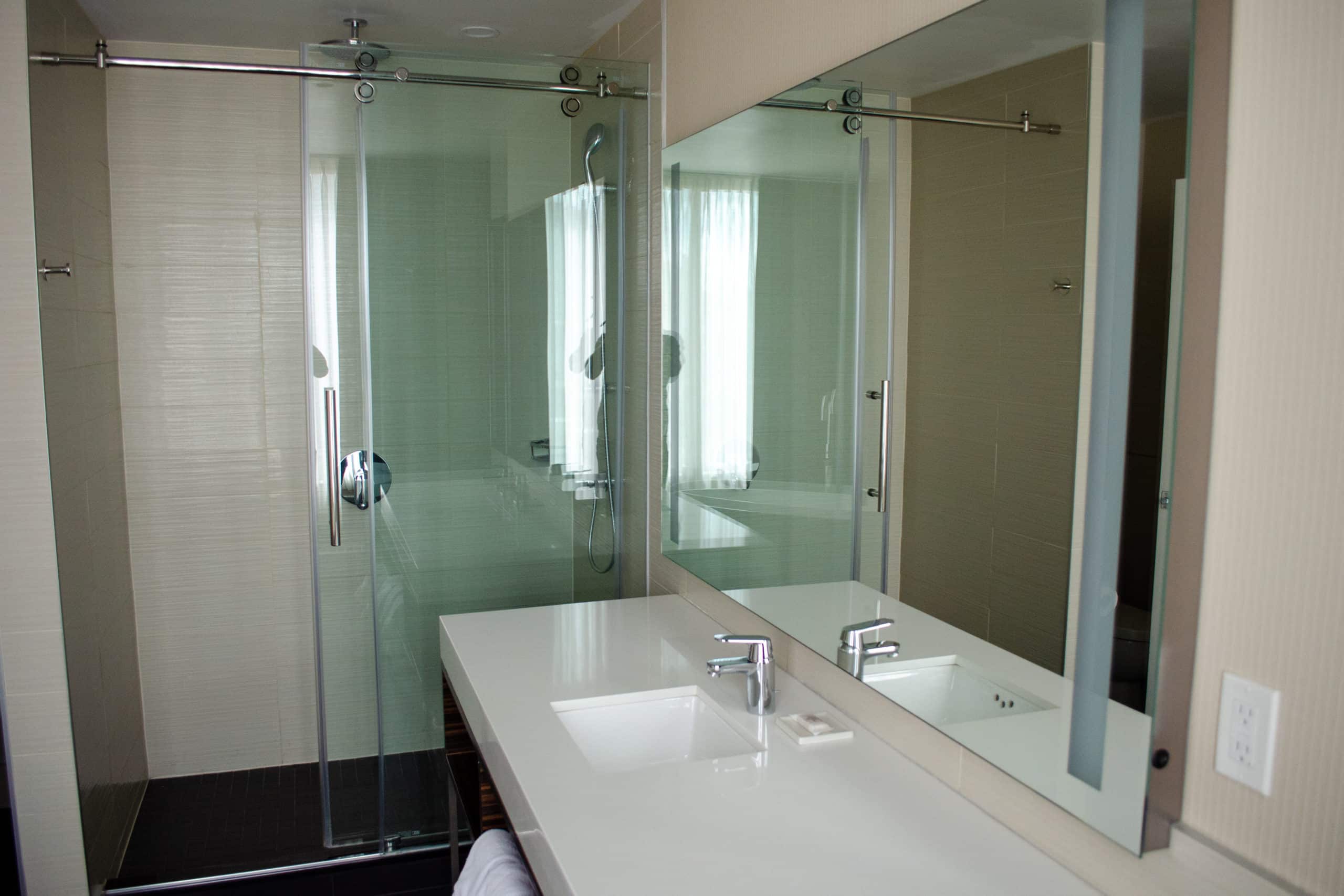 There is a large walk-in shower next to the vanity, which had excellent water pressure. Another toilet is nestled in the corner of the bathroom besides the shower and behind the door.