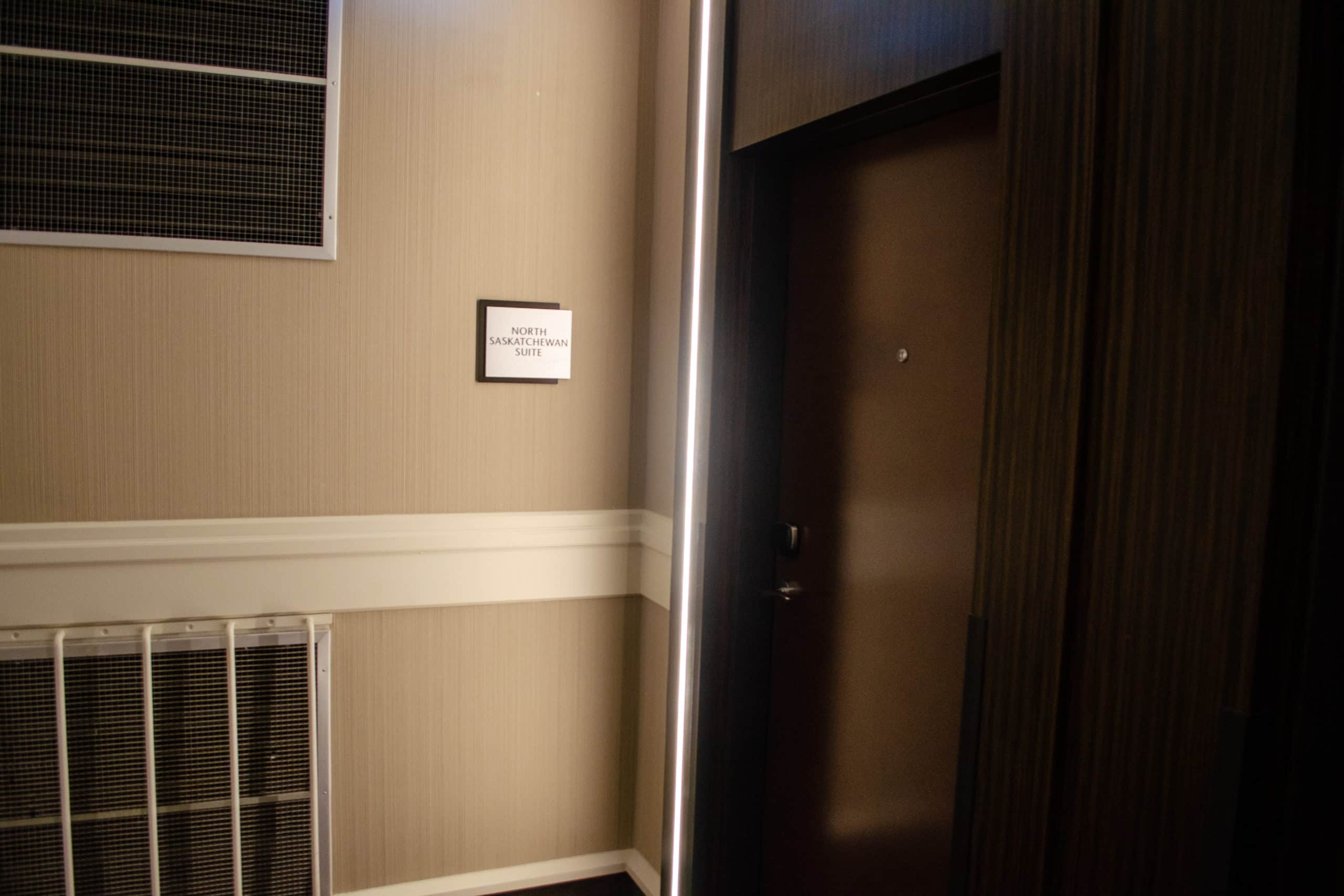 My room for the night, the North Saskatchewan Suite, was located on the hotel’s sixth floor. Technically, its room number is 609; however, the decal outside the room simply says the suite’s name rather than the room number.