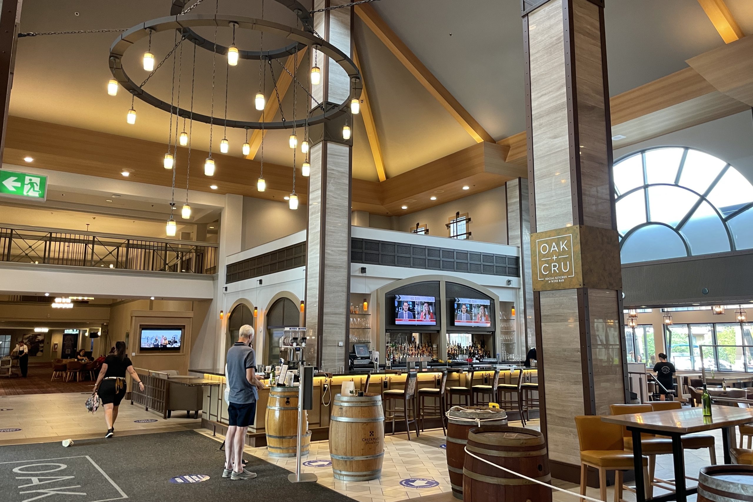 The hotel has one restaurant and bar, OAK + CRU Social Kitchen & Wine Bar, which serves breakfast, lunch, dinner and also just drinks.