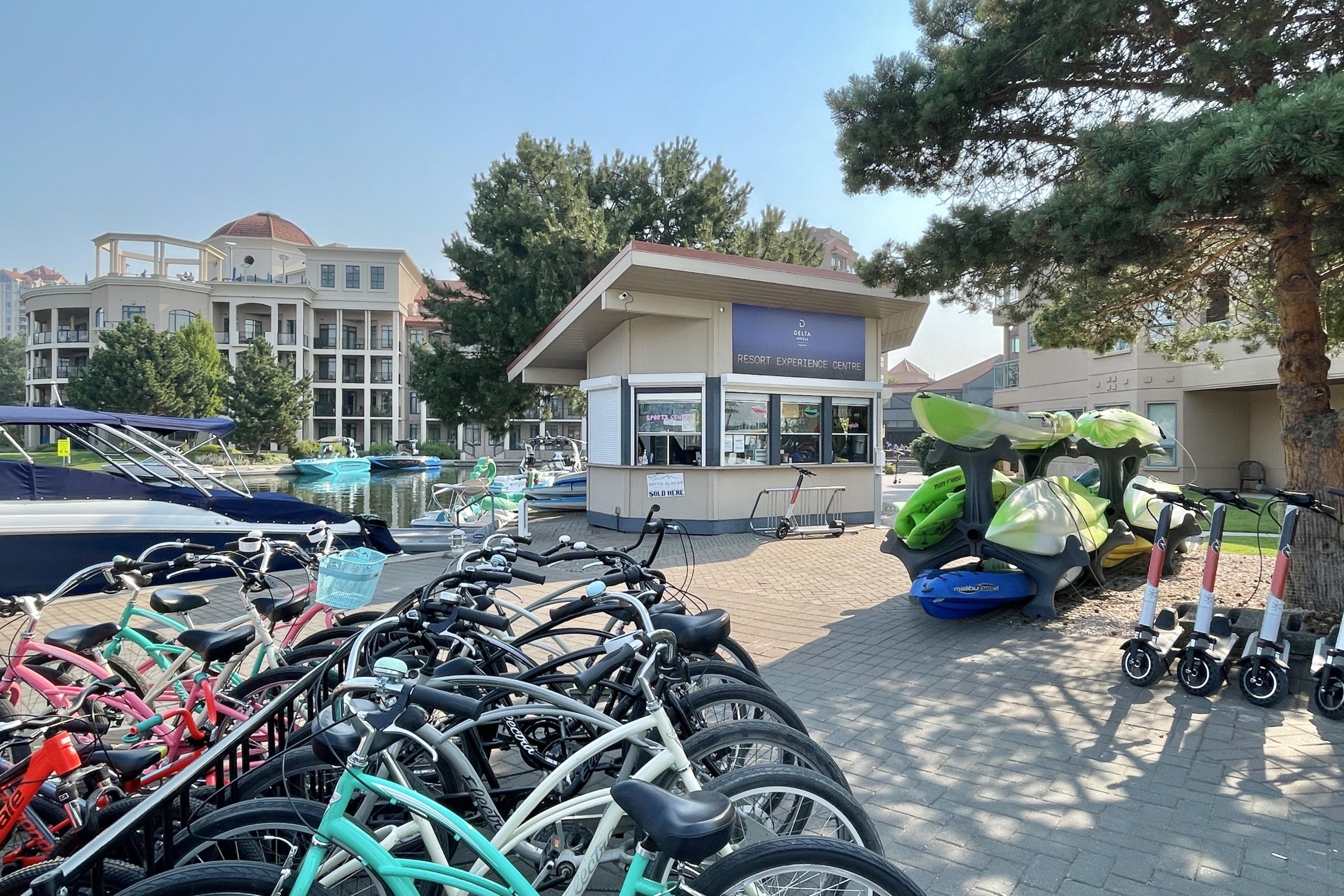 Resort Experience Centre (run by Lakefront Sports). Just outside the hotel on the waterfront, is a shed where hotel guests can rent pedal boats, kayaks, paddle boards and bikes for free, as it’s covered by the resort fee.