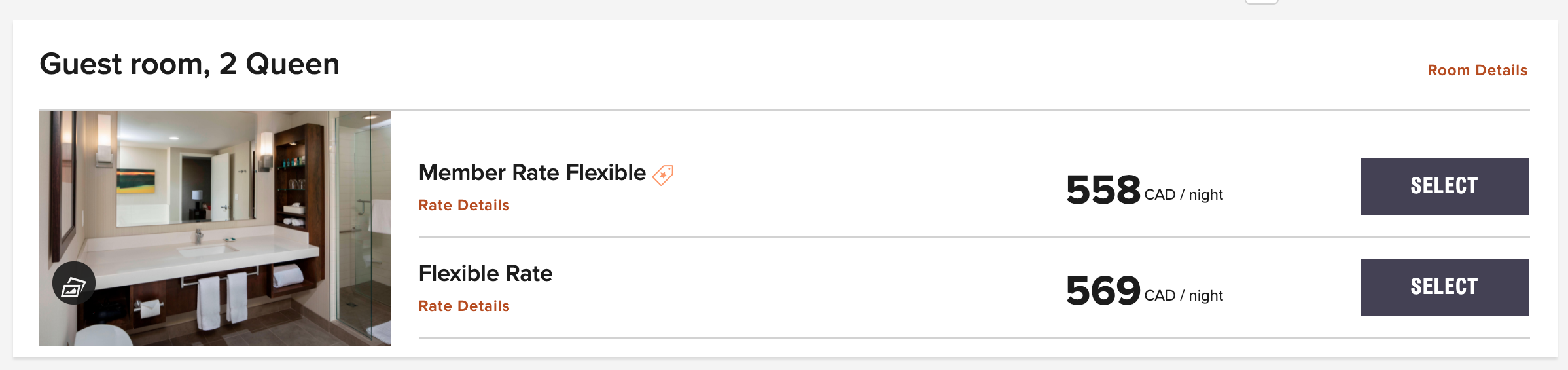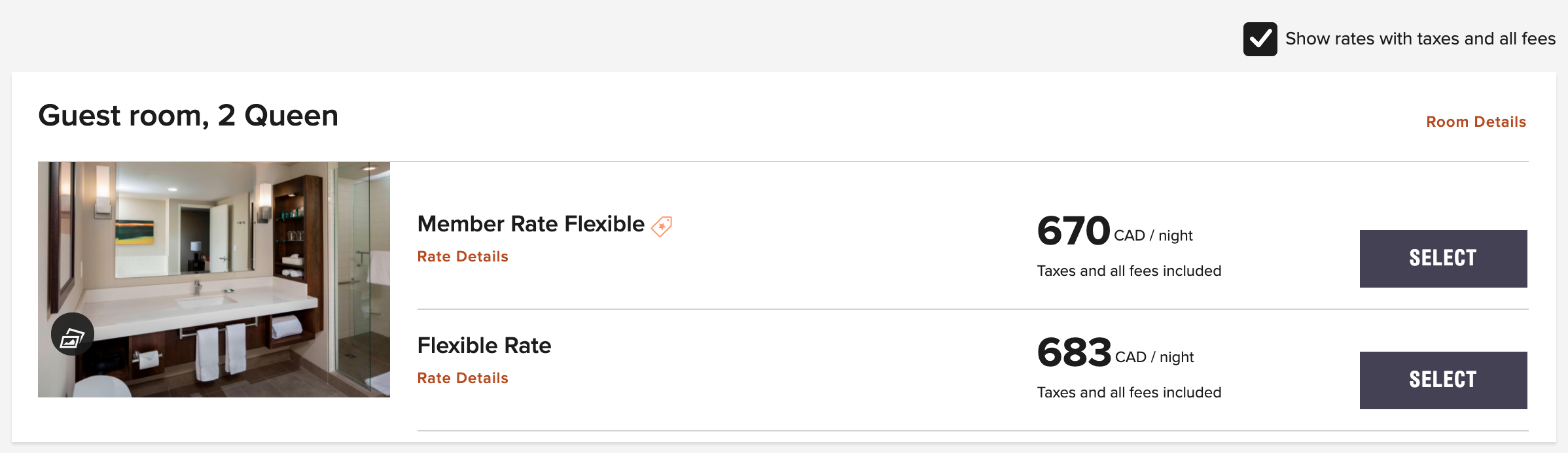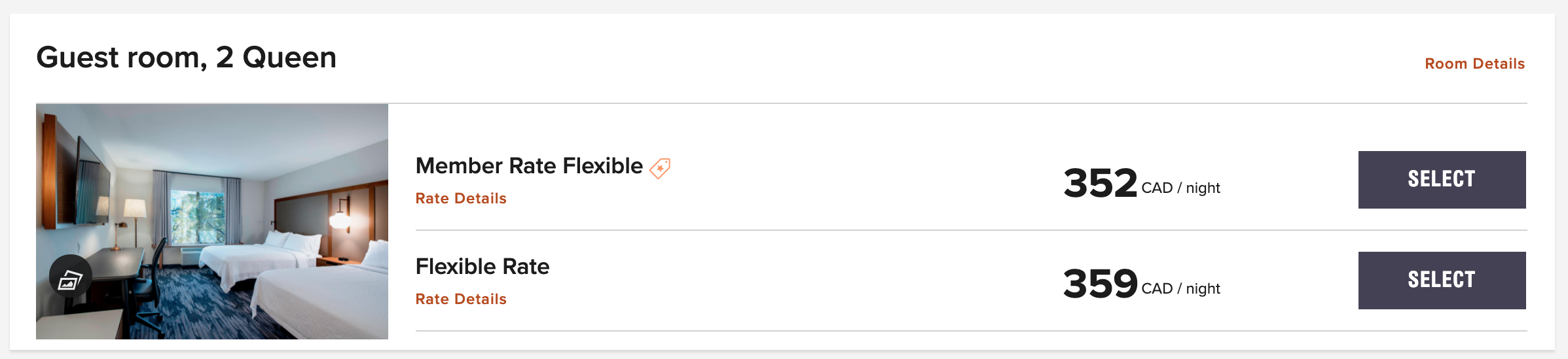 The Delta is a Marriott Bonvoy Category 6 hotel. With summer peak pricing, it cost 60,000 points per night to book a standard Guest Room with 2 Queen Beds that can officially accommodate up to four guests.