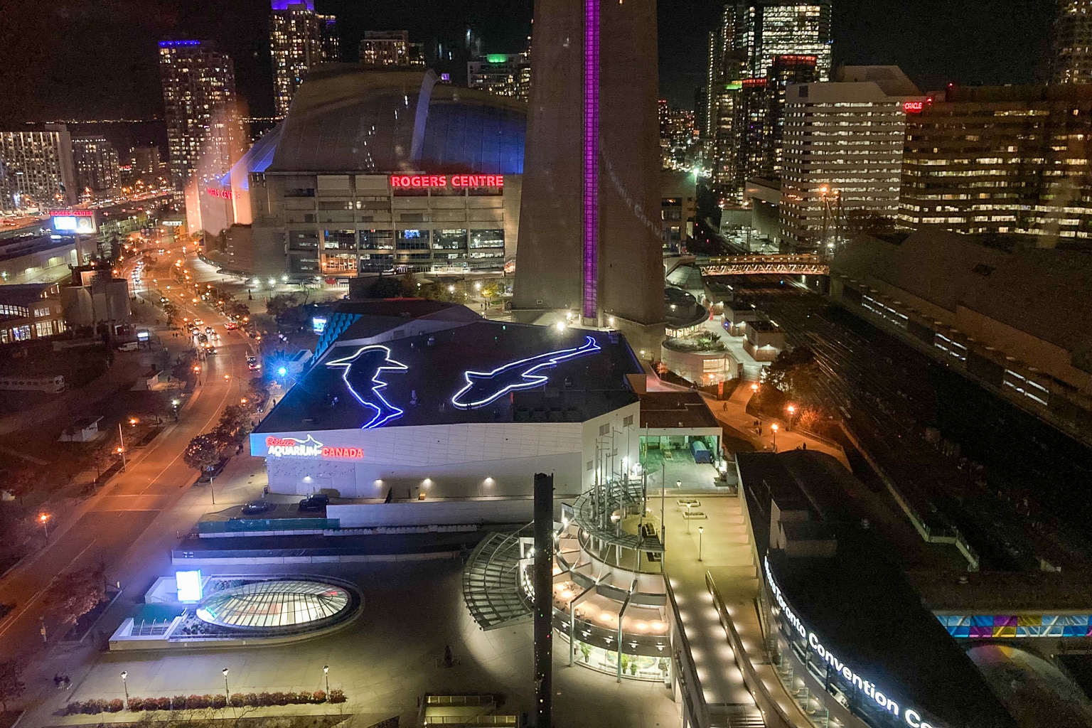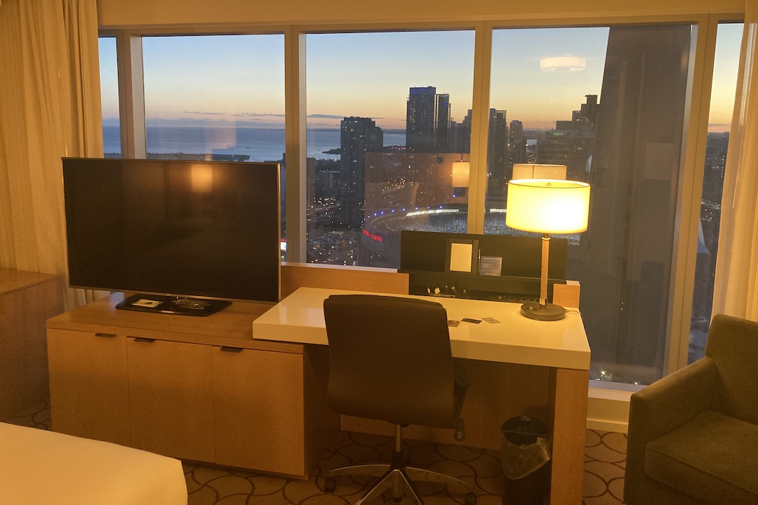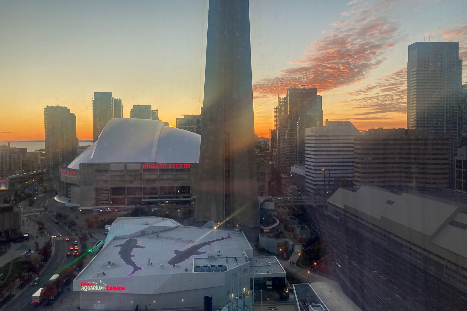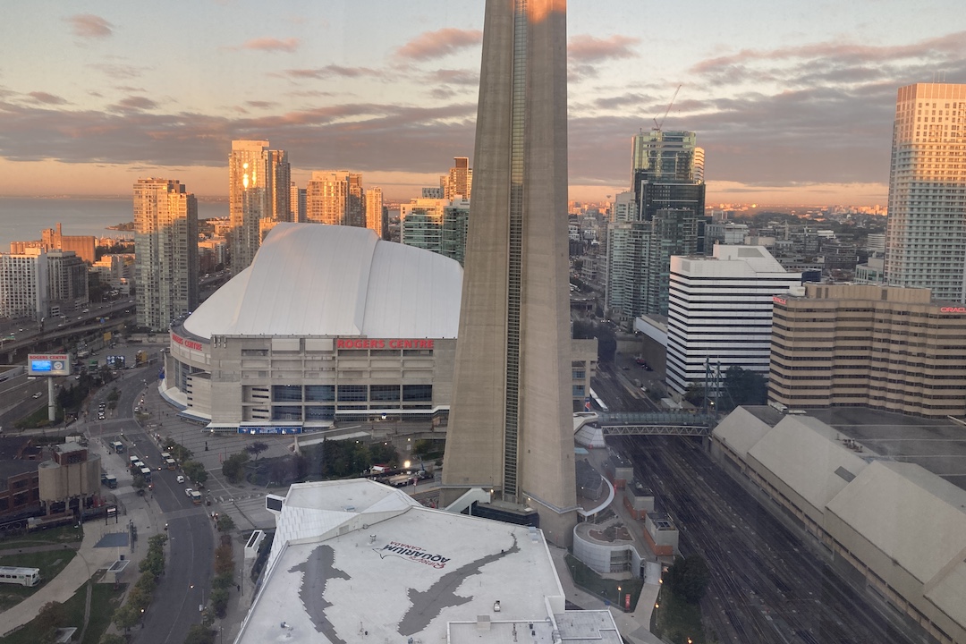Upon my arrival into my room, I was greeted by a sunset view and a peek into the open roof of the Rogers Centre, with the Blue Jays about to throw the first pitch in a big game against the Yankees.