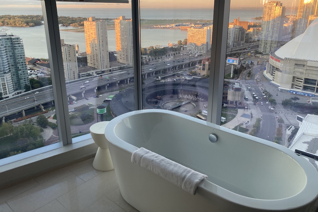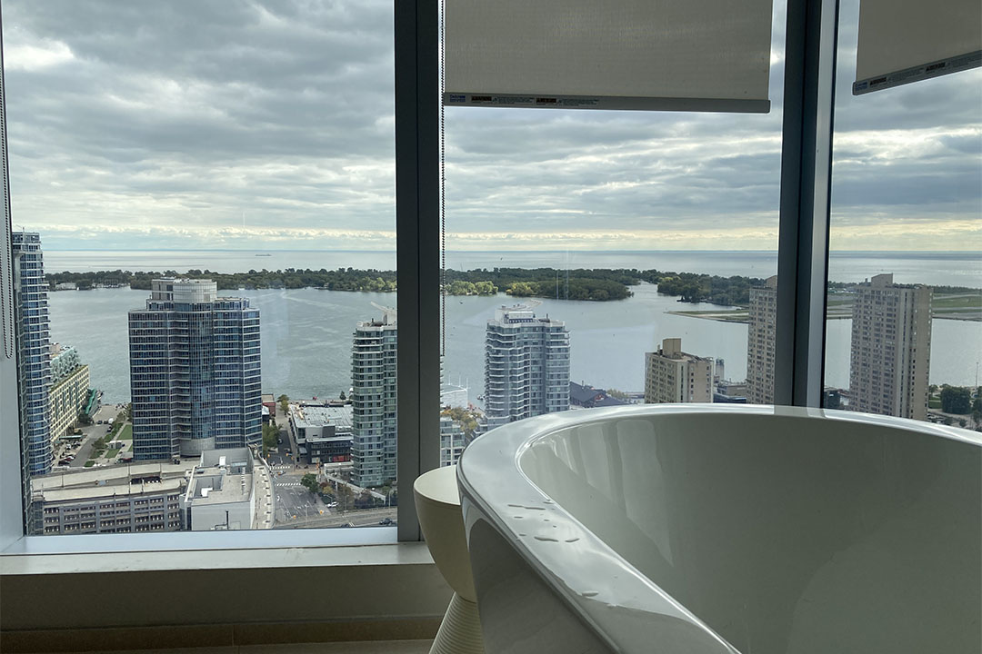 The bathrooms for all Deluxe Guest rooms are positioned on the corner of the building, so you can enjoy a panoramic vista while relaxing in the pristine, piping-hot bathwater. I carved out some time to unwind and take in the planes landing at Billy Bishop.