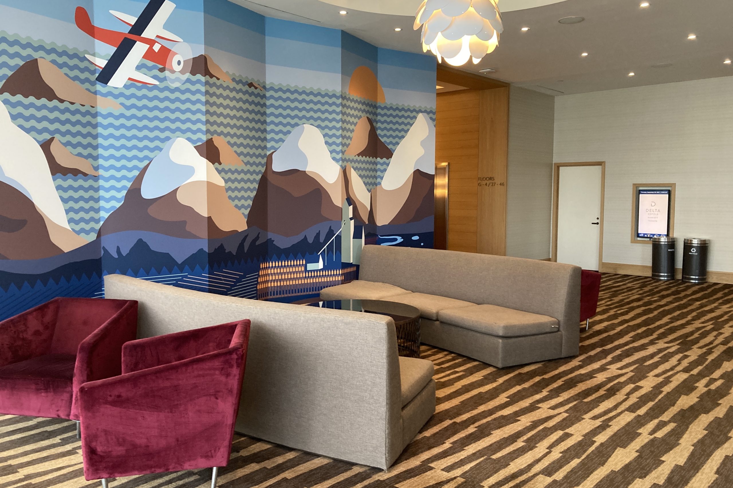 I like to describe the Delta brand as “business chic”, and that’s certainly the vibe I got from the lobby. There’s a modern energy with a mix of light-toned wood and bright, colourful lighting, which not only captures the brand but also the neighbourhood.
