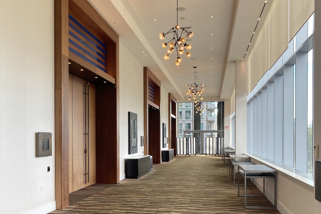 Entering from a side door is never as grand as the first impression from the main lobby entrance. Still, the spacious conference level seemed well-appointed, with modern design features and ample public seating.