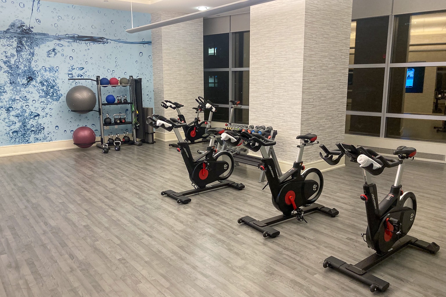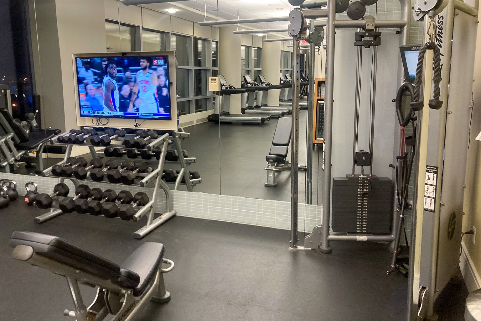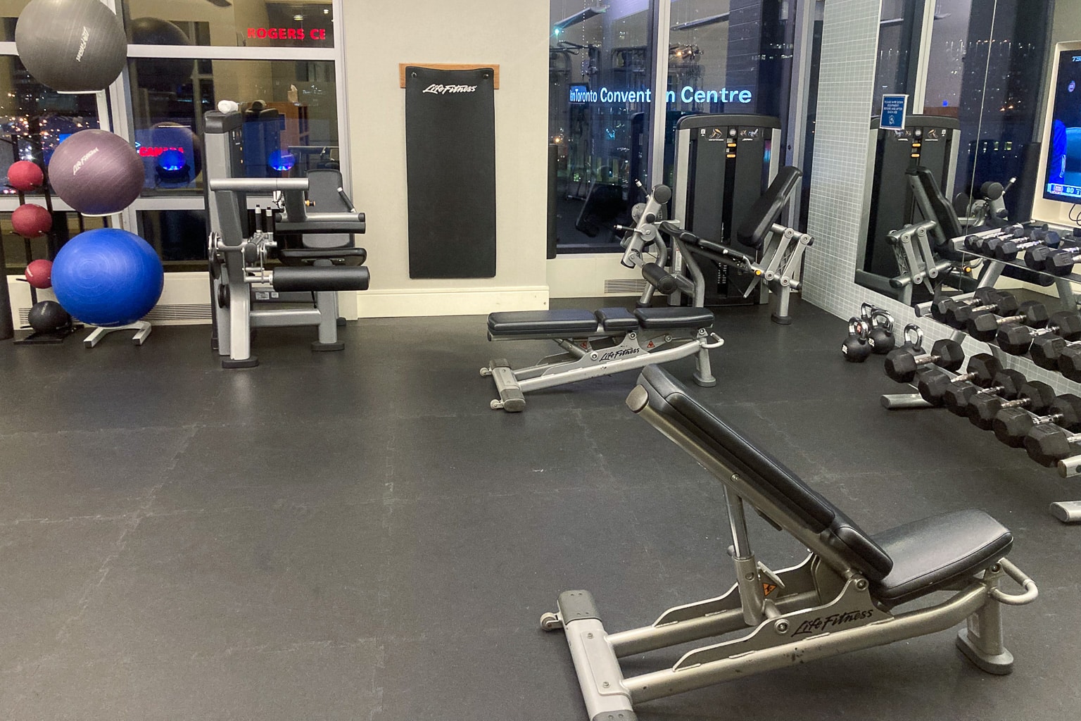The 24-hour fitness centre is a good size, with a mix of cardio machines, weight machines, and free weights. Spread across a few separate rooms, there’s lots of open floor space to do mobility exercises with the balls and resistance bands, either solo or with a group.