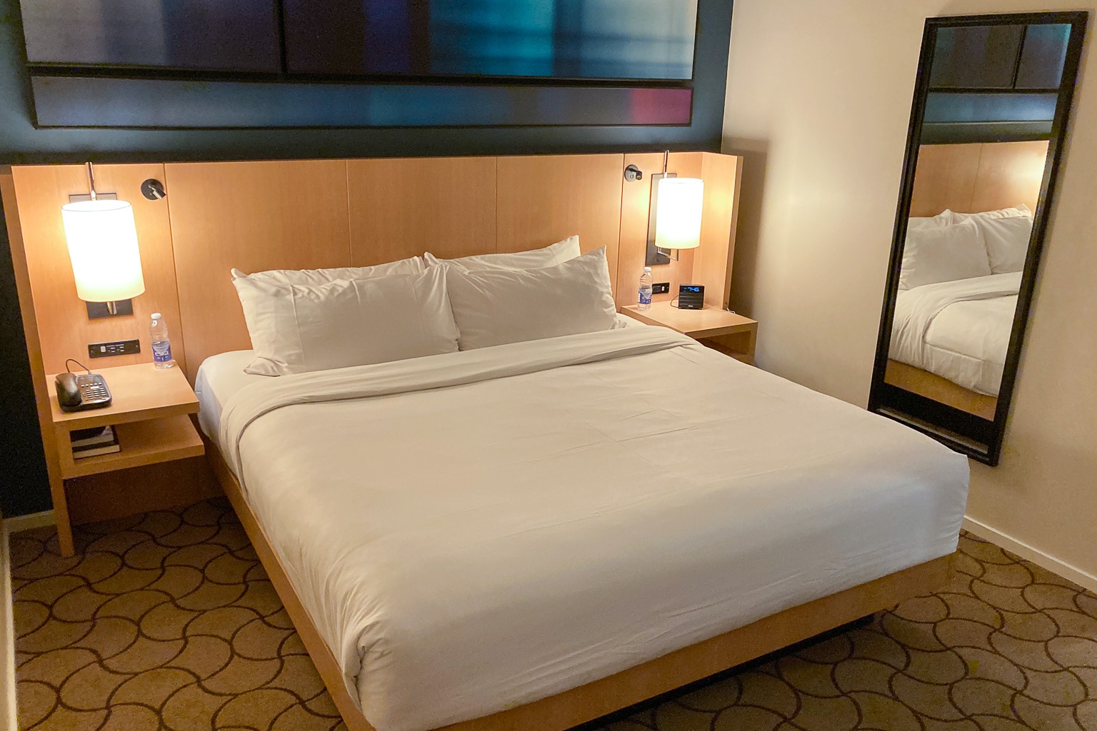 Prior to checking in for my 2021 stay, I had requested an upgrade via the app’s chat feature. There were no suites available that night, but instead I was put in a Deluxe Guest Room with a king bed.
