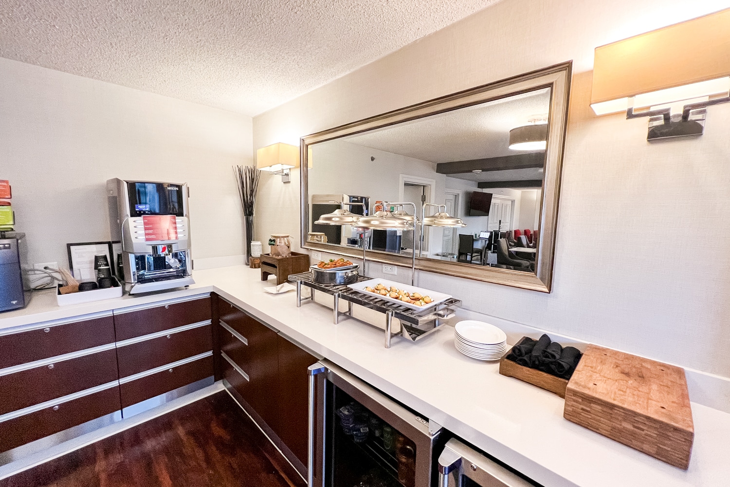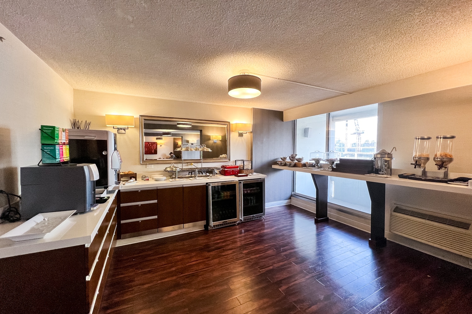 I was briefly informed of the hotel amenities, including my access to the 12th-floor Club Lounge, on account of my Titanium Elite status. Breakfast was to be served here from 6:30–11am, and an evening hors d’oeuvres spread from 4:30–7pm.