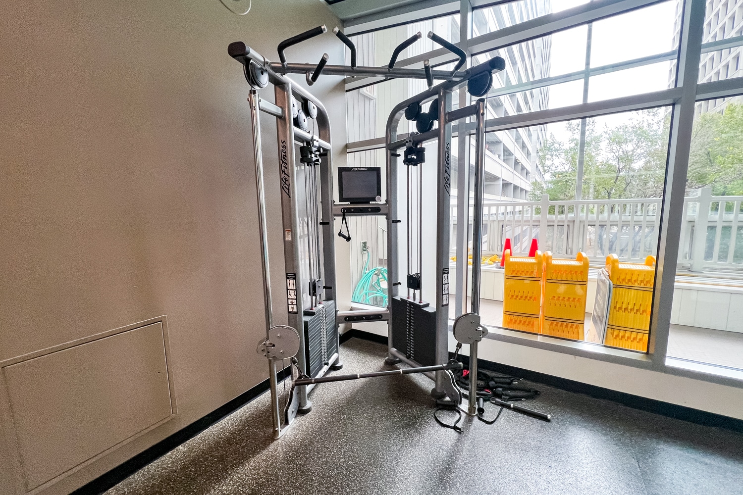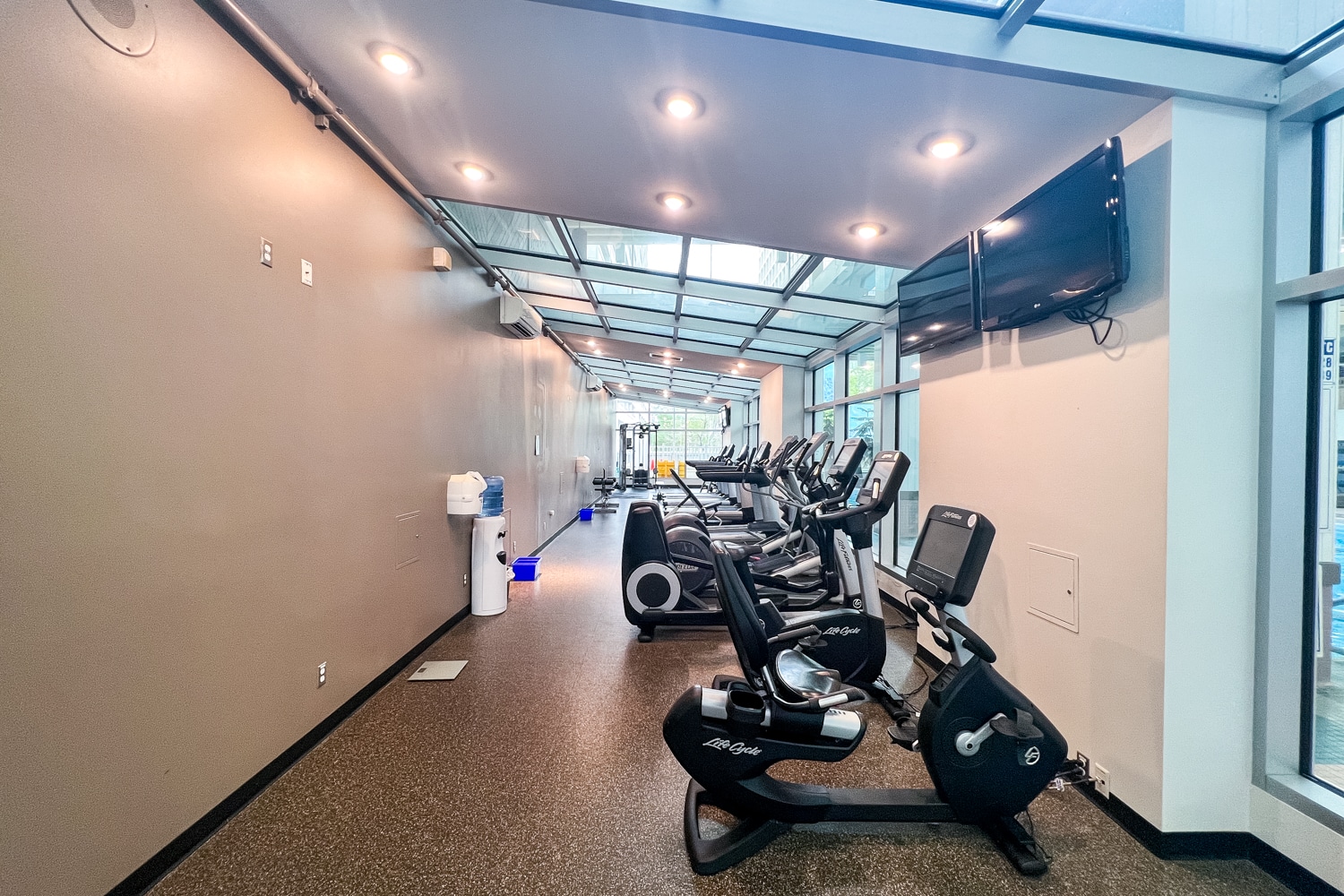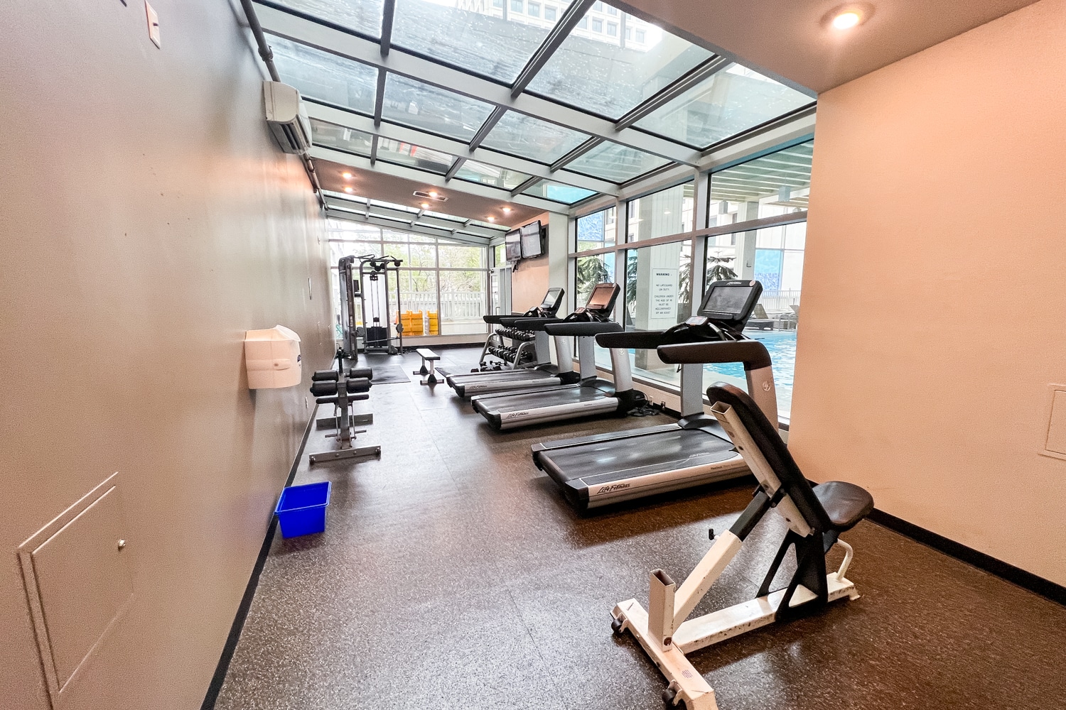The fitness centre is open 24/7, and is well-equipped with the essentials for a decent workout, with plenty of cardio equipment and some weights. Additionally, the facility has a view of the pool area, which lets a good amount of natural light in.