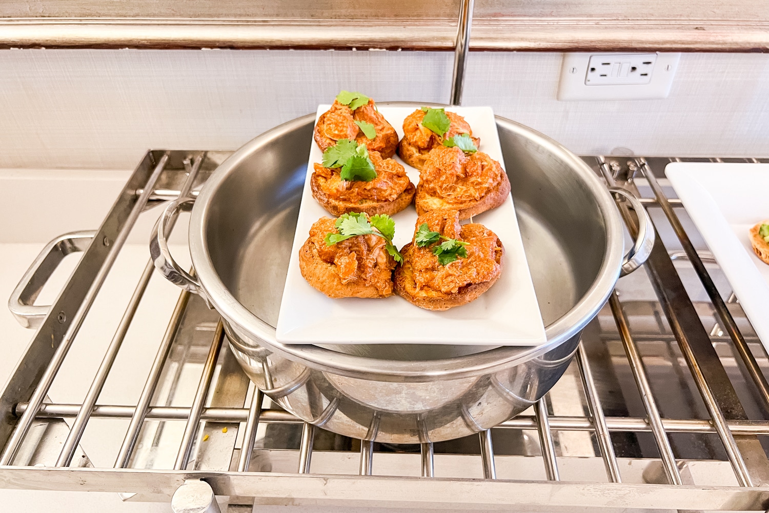 There’s also an evening hors d’oeuvres spread, which was also quite slim with just two items: butter chicken on a biscuit and crackers with hummus.